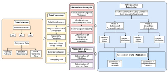 As mentioned earlier, this study is divided into two specific phases for building the RWIS network and validating the implementation of WD in the RWIS location optimization framework. The description of each phase is detailed below.