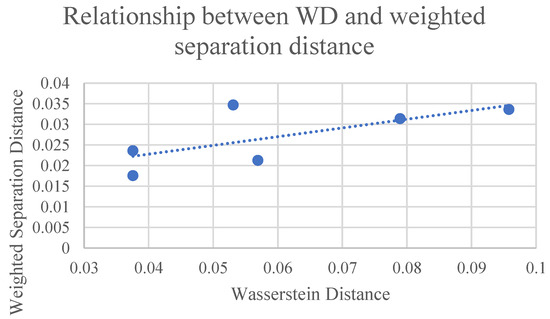 Table 6 shows that the separation distance between the original solutions and the WD solutions is as low as 2.5 km per site and as high as 4.7 km per site. The weighted separation distance reveals that the average separation distance between each site does not exceed 3.5% of the entire road length. Figure 9 demonstrates a proportional relationship between WD and weighted separation distance, with a Spearman correlation value of 0.493. This correlation, while moderate, indicates a positive association between two variables. The trend shows that as the WD increases, there is a corresponding increase in the weighted separation distance, indicating that a lower WD value between two sets of data will produce solution locations closer to each other.