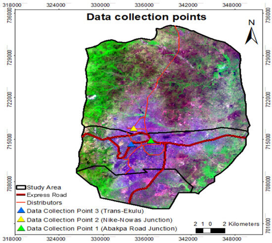 The present study focused on three main distributor roads in Enugu: Abakpa, Nike, and Trans-Ekulu Road (Figure 2). Specifically, we examined critical congestion points at Abakpa Junction, Nike Road near Nowas Junction, and the Trans-Ekulu roundabout—notorious traffic bottlenecks that experience persistent congestion. These locations represent significant pain points for residents, who frequently seek alternative routes to avoid the substantial delays and frustration these areas cause.