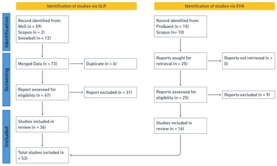 The SLR collects studies from reputable academic databases and systematically analyzes them to select the most relevant studies. However, the EHA approach focuses on collecting archival data from events within the innovation system; data is primarily derived from reports, periodicals, newspapers, and press releases. Figure 3 stipulates the framework of the methodology.