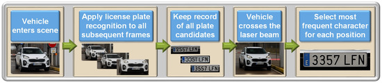 It is worth noting that the Automatic License Plate Recognition (ALPR) module, described in Section 3.2.7, is part of the overall system but is operationally decoupled from the point cloud processing and classification pipeline. While the classification of vehicles is based on LiDAR data and trained with a dedicated dataset (detailed in Section 3.2.6), the ALPR module uses video imagery and a separate dataset, and its outputs are used primarily for record-keeping and traceability rather than influencing classification outcomes.