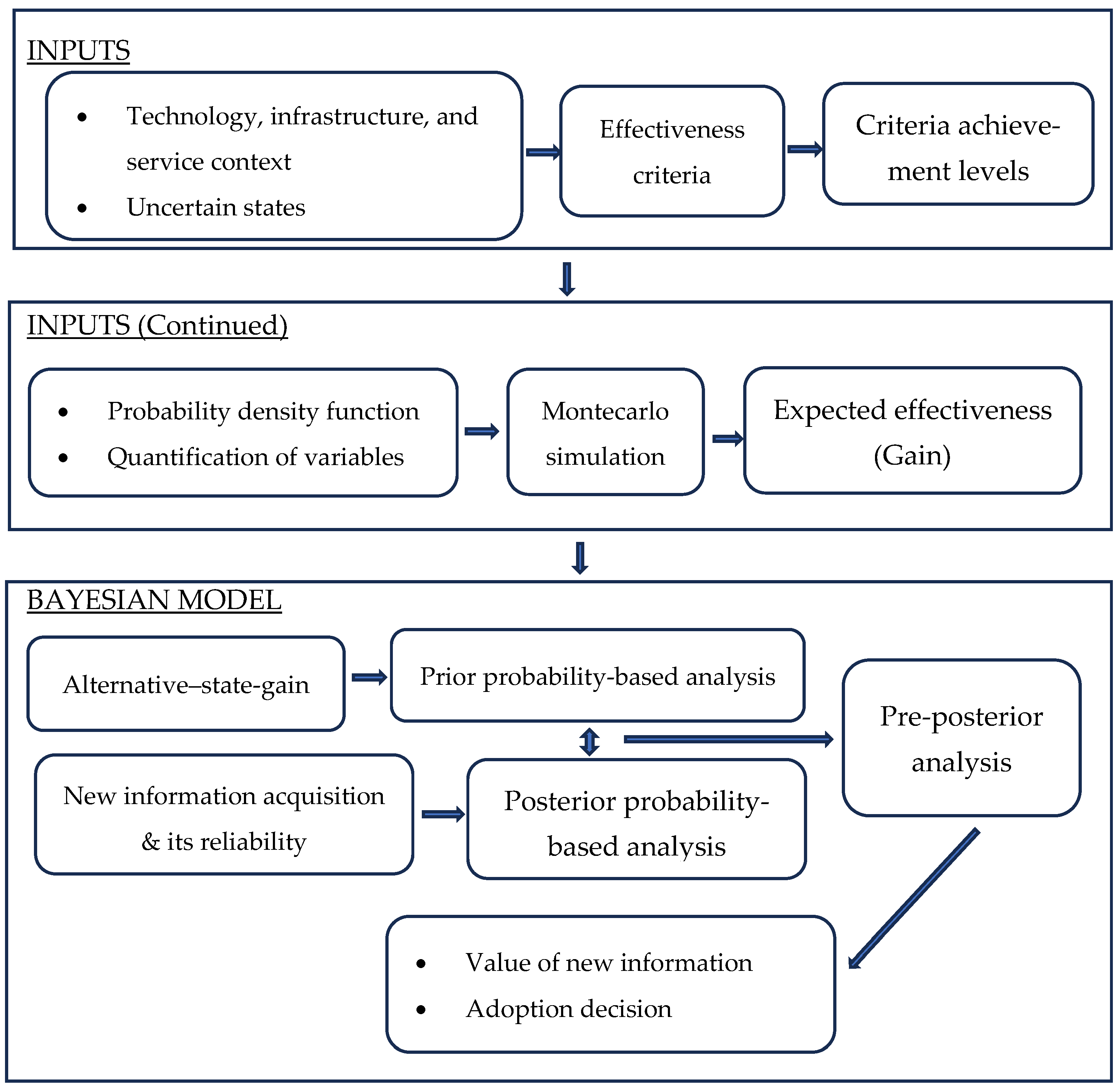 - Use of a widely utilized method to account for uncertainties in criteria achievement levels and to produce probability-weighted expected effectiveness outputs required as inputs to the Bayesian predictive model.