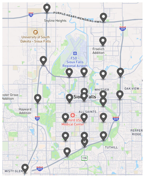 In this work, we implement our platform using the real-world transportation network, the Sioux Falls network [33] (Figure 2 and Figure 3), originally introduced in [34], which has since become a standard benchmark for transportation network simulations.