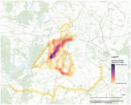 Heatmap of tracked trips in an urban area (Berlin) (created by the authors).