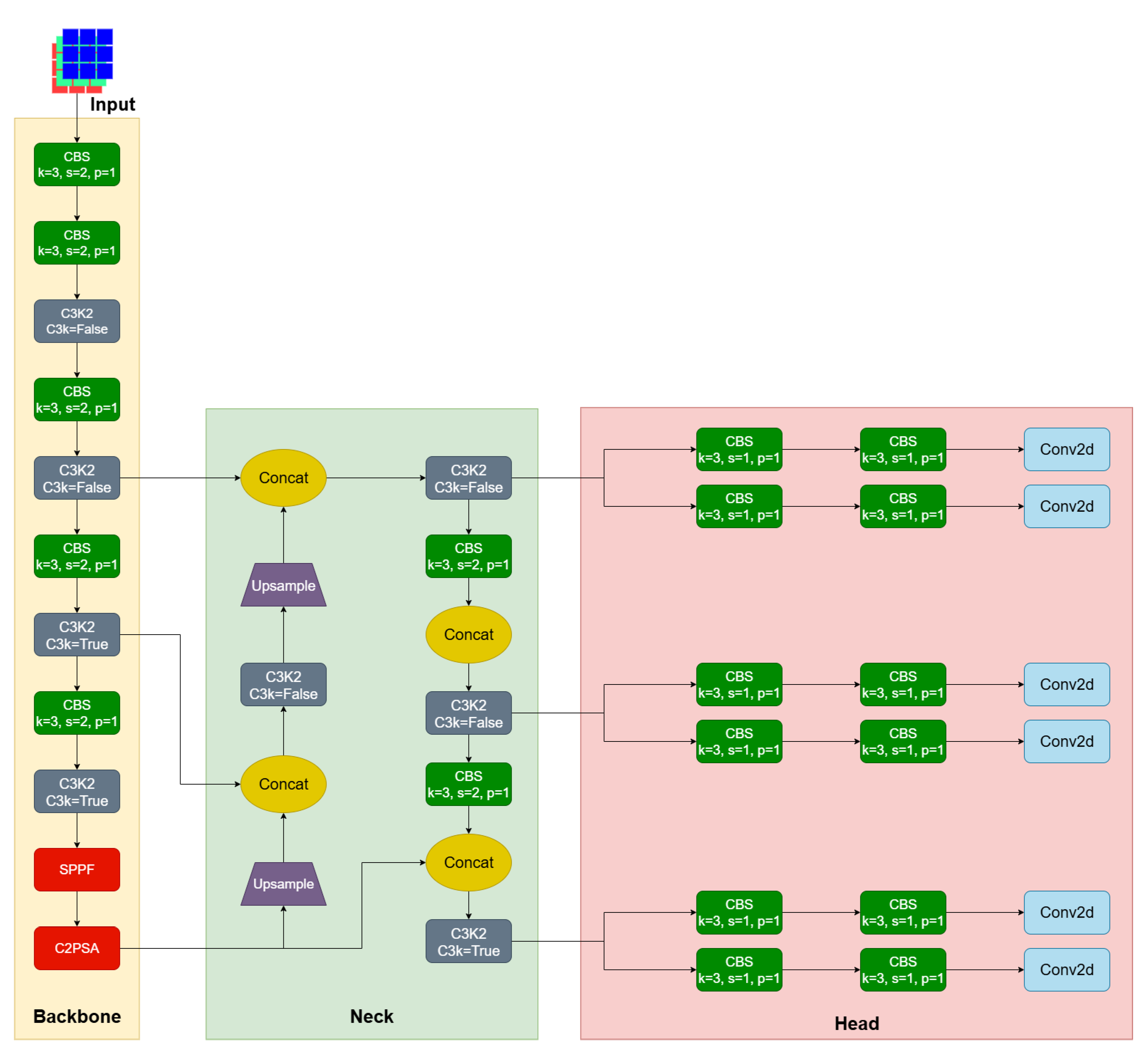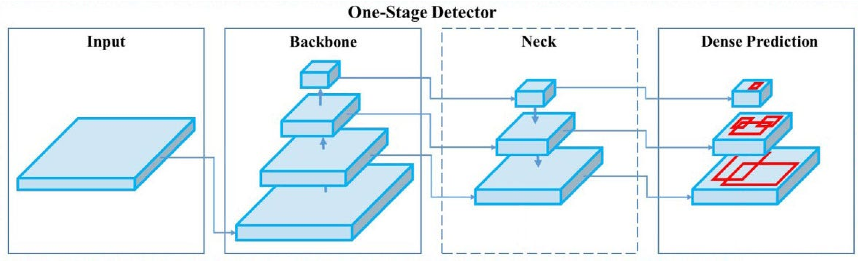 - Neck: The neck is a crucial component that connects the backbone to the head. Its primary role is to combine features from different levels of the backbone, creating a feature pyramid that captures information at multiple scales. Feature Pyramid Networks (FPNs) [24] are commonly used in the neck, and variants like PAN (Path Aggregation Network) [25] further improve feature flow and information exchange between different levels of the pyramid. The neck’s focus is on efficient feature fusion, ensuring minimal information loss while combining features from different scales.