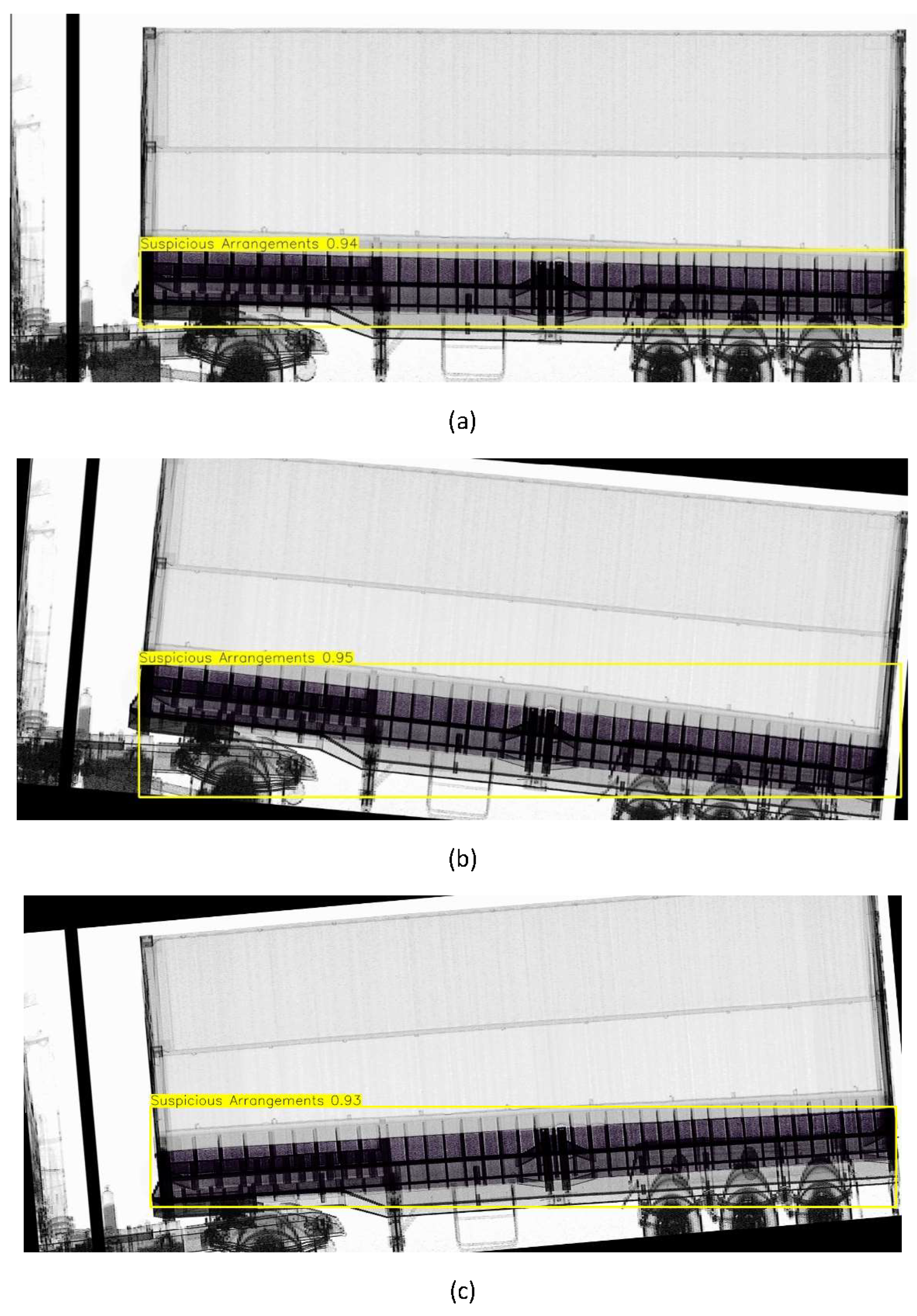 - The integration of advanced IoU-based loss functions into the latest YOLO architecture offers a more feasible trade-off between detection accuracy and computational efficiency for real-time X-ray-based cargo inspection compared to other popular deep learning object-detection architectures such as DETR (DEtection TRansformer) and Faster R-CNN (Region-based Convolutional Neural Network).