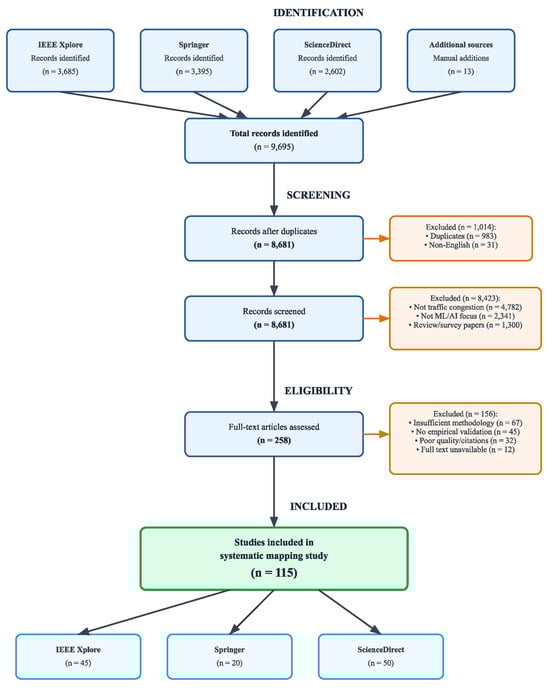 This systematic review established a foundational empirical framework for research on machine learning in traffic congestion forecasting through a comprehensive analysis of 115 peer-reviewed studies conducted over 14 years. The investigation illustrates the successful evolution of the field from experimental approaches to sophisticated methodological implementations, while identifying critical opportunities for strategic advancement. The documented progression from traditional statistical methods to the dominance of deep learning, coupled with exceptional publication quality standards and sustained research momentum, positions the field for transformative practical impact. The identified research gaps provide a strategic roadmap for coordinated investment in underrepresented areas, whereas established methodological sophistication supports large-scale operational deployment.