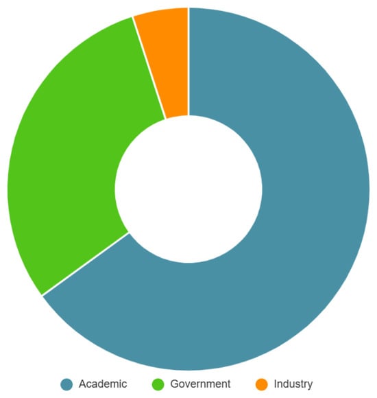 The predominant presence of academic leadership (70%) underscores robust theoretical foundations, yet may also indicate a potential disconnection from the challenges associated with practical implementation. The significant involvement of governmental entities (27%) offers avenues for policy-relevant research and access to public sector funding. Conversely, limited engagement with industry (3%) presents both a challenge and an opportunity to enhance the practical impact. Researchers must strike a balance between theoretical advancement and practical applicability to ensure the relevance and potential implementation of their research.