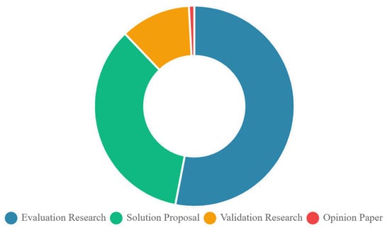 The predominance of evaluation research, accounting for 53% of the studies, underscores the field’s emphasis on empirical validation and comparative analysis, thereby establishing a standard for rigorous performance assessment in future research. The equilibrium between evaluation and solution proposal research reflects a dynamic and healthy ecosystem. Nonetheless, the negligible contribution of opinion papers, at only 1%, suggests potential deficiencies in theoretical discourse and position statements that could offer strategic directions for the field’s advancement.
