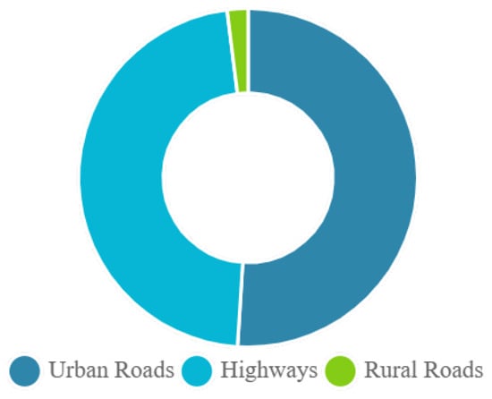Figure 16, indicates a balanced focus on the primary infrastructure types. Specifically, urban roadways constituted 51% (