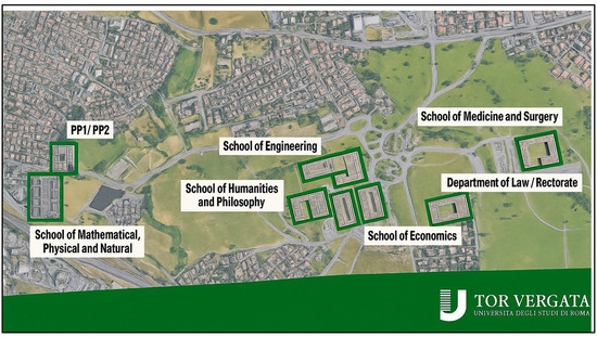 - spatial identification of V2G hub on the campus; secondly, by focusing on spatially identifying areas where V2G services can be effectively deployed, using FCD, potential and actual V2G operation points are mapped; in this study, the University of Rome Tor Vergata campus, designed as a university city model, serves as a case study; the campus has unique characteristics, including high vehicle turnover and centralised infrastructure, that make it an ideal candidate for V2G implementation;