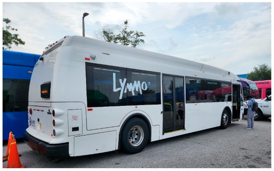 The primary objectives of this study include investigating the influence of multiple factors on the energy efficiency of EBs. The factors include speed, idling, driving patterns, and HVAC usage, among others. For this study, the research team partnered with the LYNX [14], particularly its EB fleet division known as “LYMMO” [15], which operates within Downtown Orlando. LYMMO is a complimentary downtown circulator that offers free transportation services to its users. The LYNX LYMMO service was developed in 1997 to provide free access to public transportation in the downtown business, entertainment, and shopping district. The three LYMMO Downtown Lines (Orange, Grapefruit, and Lime) have dedicated lanes and control their traffic signals along routes to optimize performance. The LYMMO Orange Line provides frequent service to specific locations in downtown Orlando, operating every 8 min during office hours and every 15 min during evenings, weekends, and holidays. The LYMMO Grapefruit Line operates every 8–10 min during office hours and every 15 min during evenings, weekends, and holidays. The LYMMO Lime Line operates every 15 min during office hours and every 20 min during evenings, weekends, and holidays. All the routes and operating hours mentioned here were last updated in May 2024. LYMMO buses began transitioning to an all-electric fleet in October 2020 to be fully electric by the end of Summer 2023 with 14 EBs.