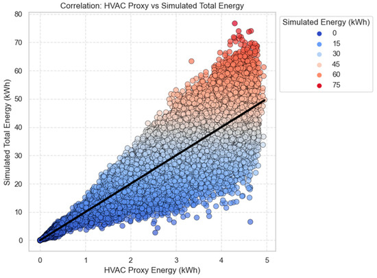 However, the study has limitations. HVAC energy use was estimated through proxies, not direct telemetry, introducing some uncertainty. The model shows strong internal consistency (Pearson = 0.882, Spearman = 0.897) but lacks independent validation. As the simulated total energy was derived from the proxy with added noise, this creates potential circularity. Future validation using direct HVAC telemetry is essential.
