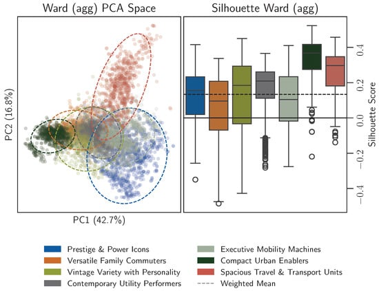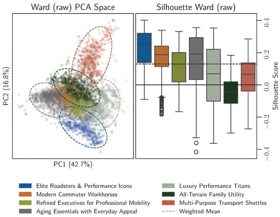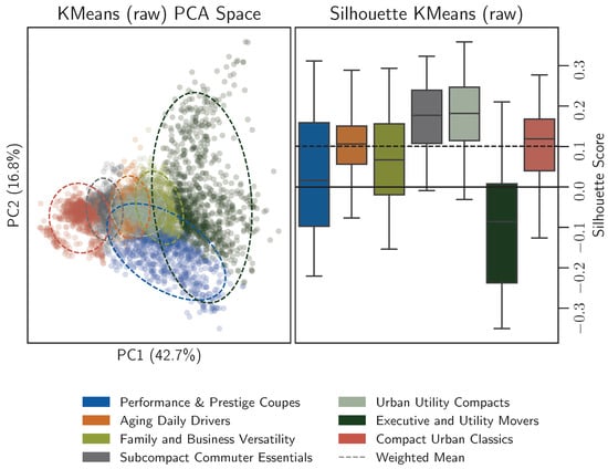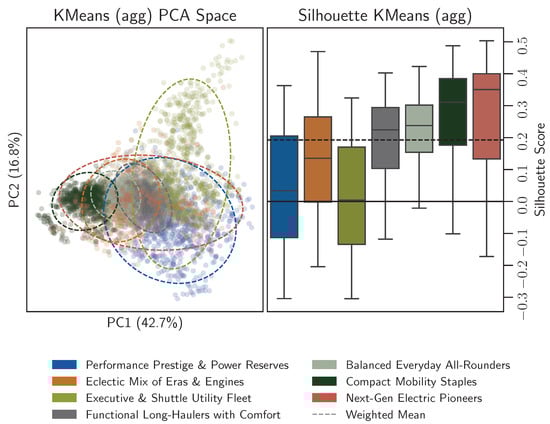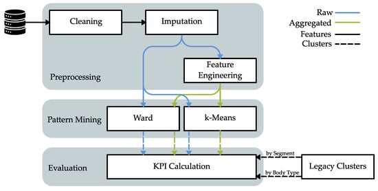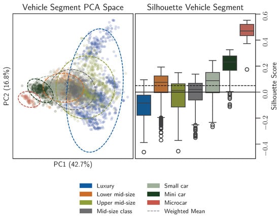 The passenger car market has experienced a radical shift: the rise of SUV, crossover vehicles, but also Battery Electric Vehicle (BEV) and Plug-In Hybrid Vehicle (PHEV), has blurred the borders between traditional vehicle segments as well as body types, resulting in reduced applicability of conventional taxonomies of vehicle types. This study aims to provide an overview of the vehicle market by proposing a new, machine-learning-based segmentation of the entire German vehicle fleet covering the past years. We merge over 40 million registered vehicles with a technical specifications database and apply data-mining techniques to derive an improved market segmentation. We demonstrate that unsupervised learning techniques, specifically Ward and k-means clustering, yield clusters with enhanced separation, clarity, and practical usability. Clustering was applied to both raw technical features and engineered features designed to capture aspects of economy, ecology, usability, and performance. The silhouette scores can reach 0.19, a significant increase over the +0.05/−0.05 scores of the existing vehicle segments or chassis types. Full article
