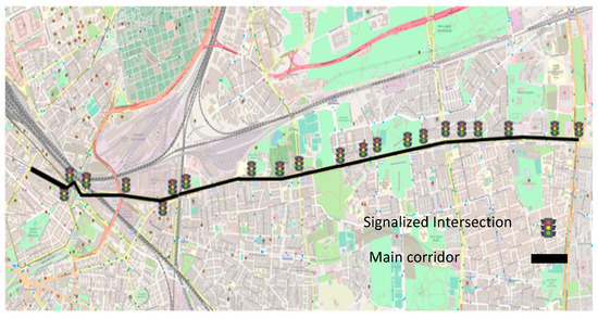 This study investigates the use of deep reinforcement learning techniques to improve traffic signal control systems through the integration of deep learning and reinforcement learning approaches. The purpose of a deep reinforcement learning architecture is to provide adaptive control via a reinforcement learning interface and deep learning for the representation of traffic queues with regards to signal timings. This has driven recent research, which has reported success in the use of such dynamic approaches. To further explore this success, we apply a deep reinforcement learning algorithm over a grid of 21 interconnected traffic signalized intersections and monitor its effectiveness. Unlike previous research, which often examined isolated or idealized scenarios, our model is applied to the real-world traffic network of Via “Prenestina” in eastern Rome. We utilize the Simulation of Urban MObility (SUMO) platform to simulate and test the model. This study has two main objectives: ensure the algorithm’s correct implementation in a real traffic network and assess its impact on public transportation, incorporating an additional priority reward for public transport. The simulation results confirm the model’s effectiveness in optimizing traffic signals and reducing delays for public transport. Full article