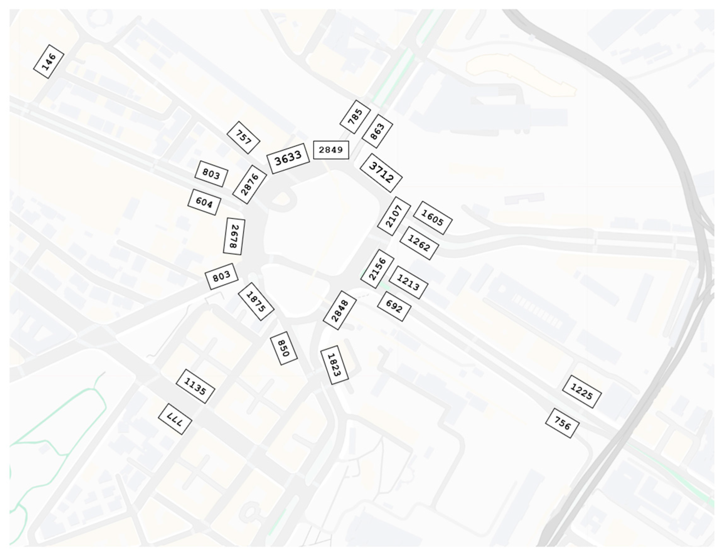 - Feldman, O. The GEH Measure and Quality of the Highway Assignment Models. In Proceedings of the Association for European Transport and Contributors, Glasgow, Scotland, 8–10 October 2012. [Google Scholar]
