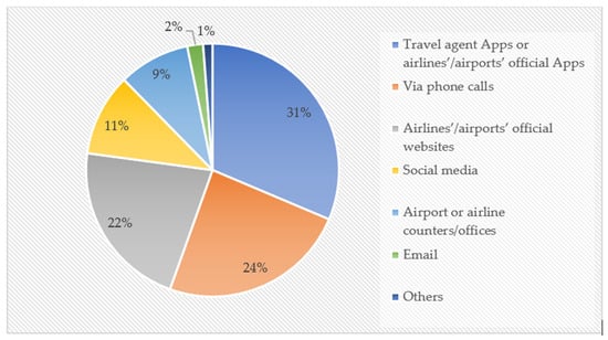 Other essential steps before passengers’ departure include checking flight and airport information. Table 5 shows the results of how older passengers in China completed these activities, with more than one answer that could be selected for these questions.