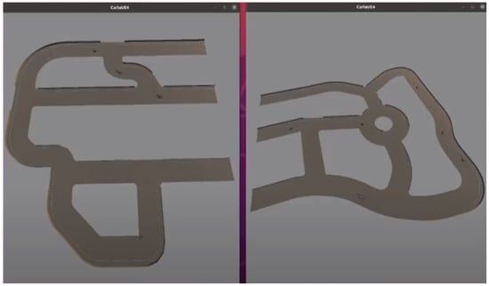 Figure 4 shows an example of two CARLA instances simulated on the same computer in parallel, implementing scenes with simple maps defined using the OpenDRIVE format. When a vehicle is transitioned from one scene to another, its speed, acceleration, and direction remain unchanged. Two scenes are used in this example, but the number can be increased. This implementation confirms the feasibility of using CARLA for parallel simulation with vehicle transitions between the simulated areas.