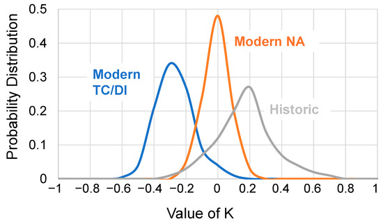 Probability distribution of values of K for different engine designs based on data from [13].