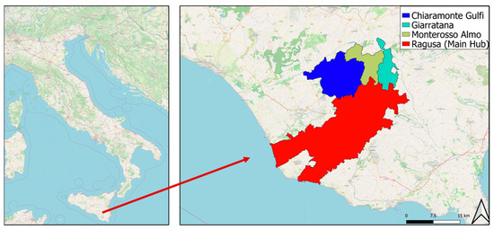 The service analysed connects the municipality of Ragusa with three mountain municipalities in the area: Chiaramonte Gulfi, Giarratana, and Monterosso Almo. The three peripheral areas are characterised by predominantly mountainous terrain and an ageing population [47]. As seen, the city of Ragusa represents the main hub, since most of the activities and services in the area are concentrated there.