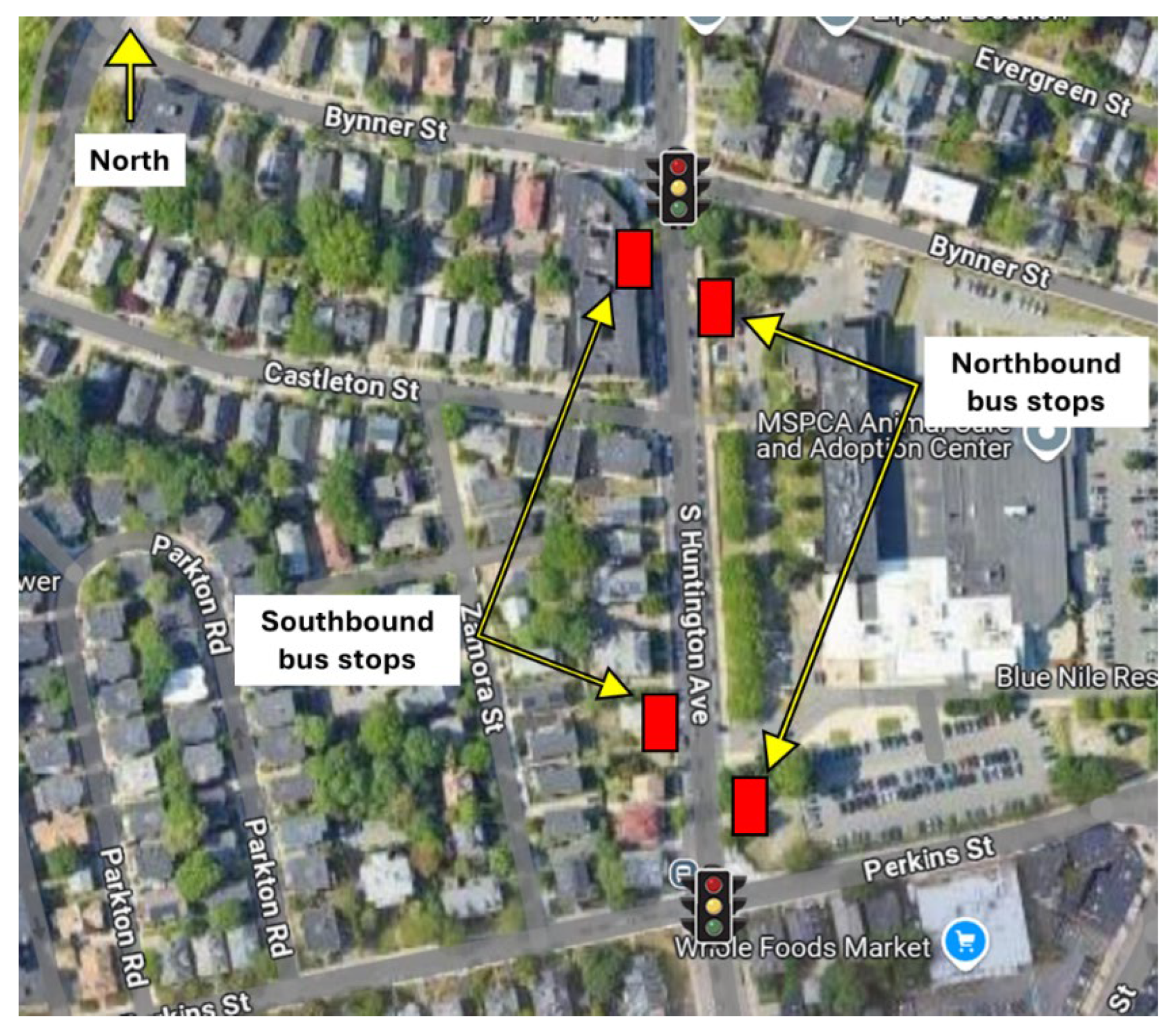 3.3. Study Site 3: South Huntington Avenue at Perkins and Bynner Streets, Boston