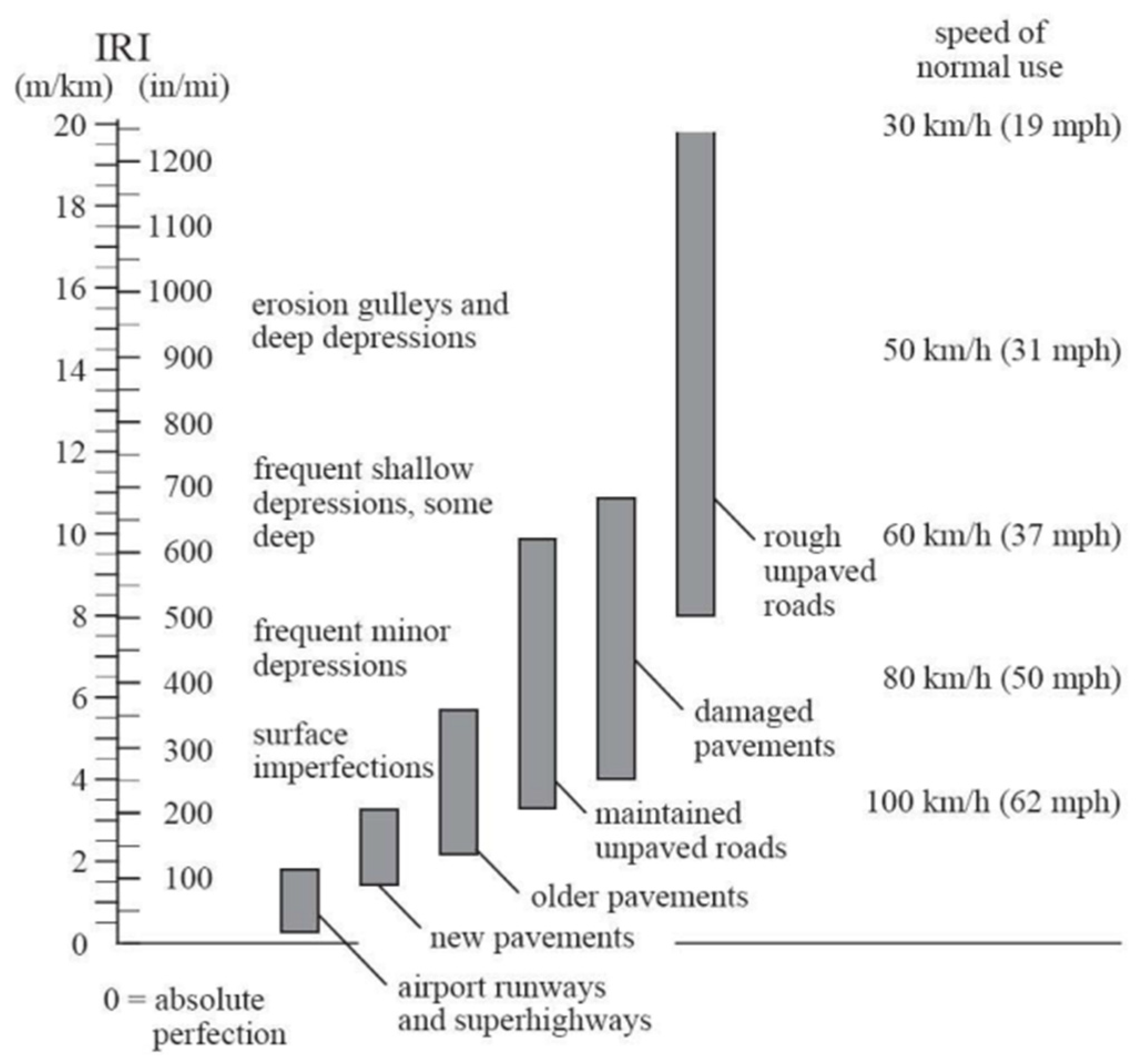 - Kropáč, O.; Múčka, P. Be Careful When Using the International Roughness Index as an Indicator of Road Unevenness. J. Sound. Vib. 2005, 287, 989–1003. [Google Scholar] [CrossRef]