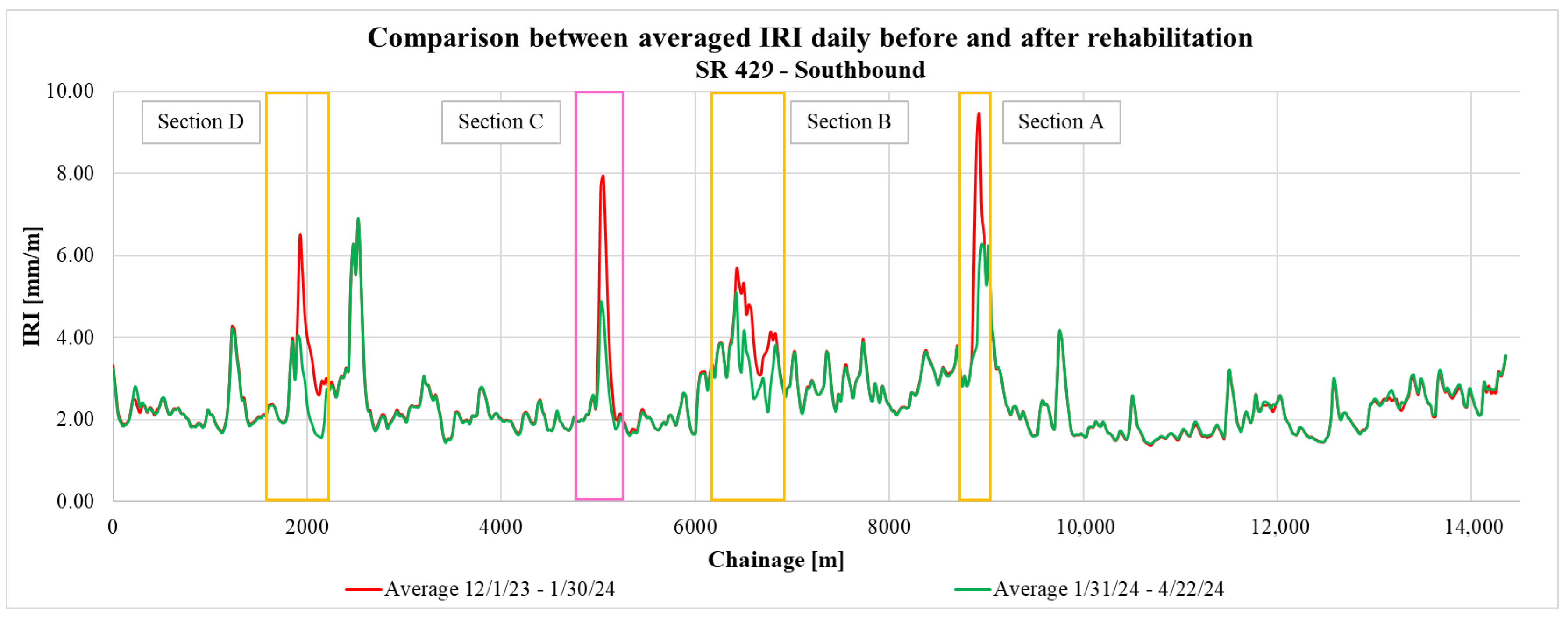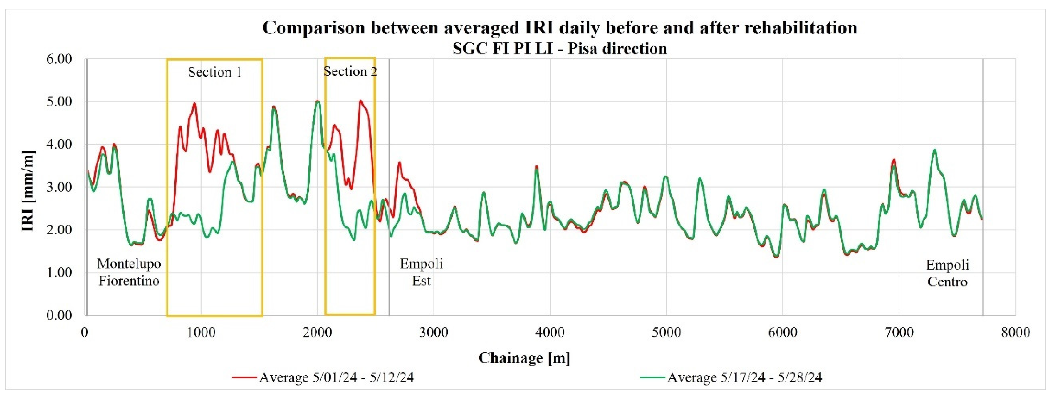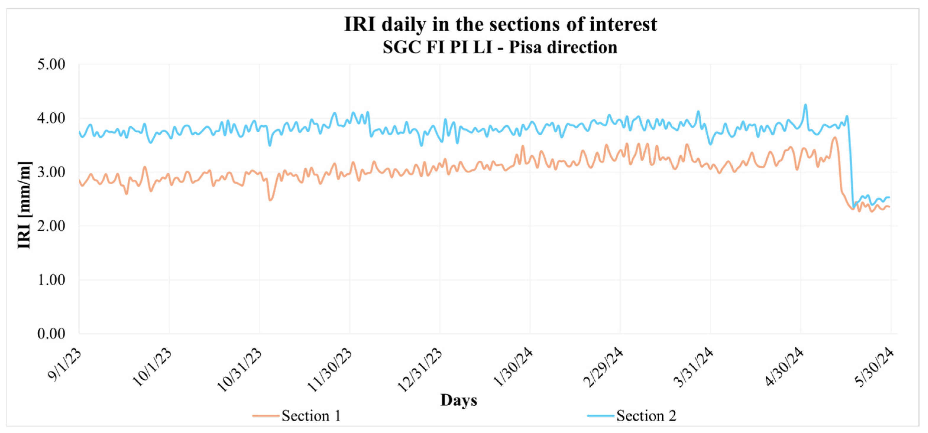 - Ceriani, R.; Vignali, V.; Chiola, D.; Pazzini, M.; Pettinari, M.; Lantieri, C. Exploring the Effectiveness of Road Maintenance Interventions on IRI Value Using Crowdsourced Connected Vehicle Data. Sensors 2025, 25, 3091. [Google Scholar] [CrossRef] [PubMed]