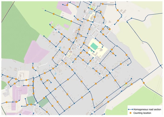 Road sections with a length below 100 m or inherently non-homogeneous traversal conditions were skipped, as those are not considered suitable for traffic counting and are commonly populated with data via network analysis.