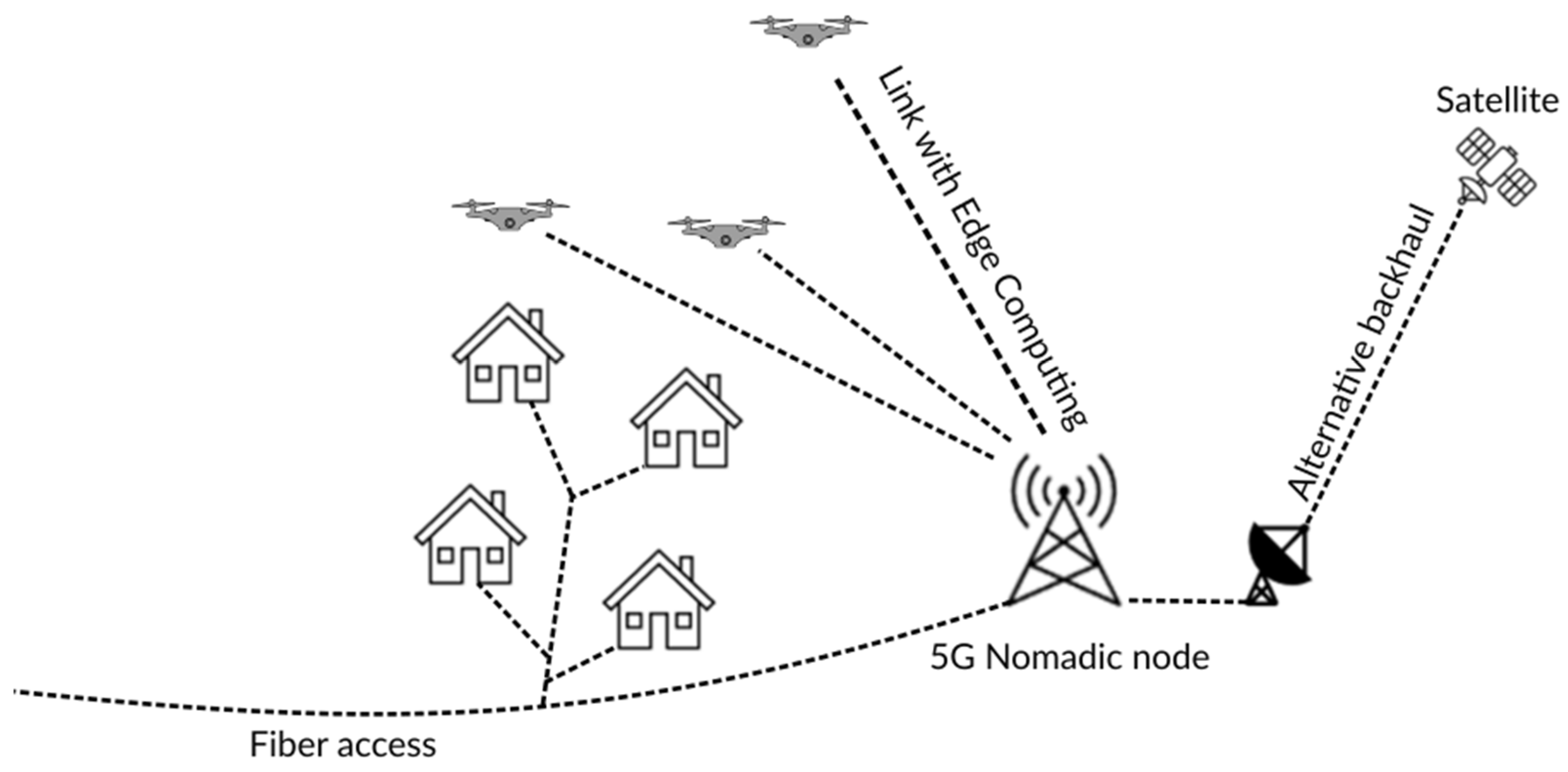 61]. Telefónica Spain’s pilot program represents the first 5G-connected drone air traffic control system, combining UAVs, C-V2X communications, RTK positioning, and mobile location services [
