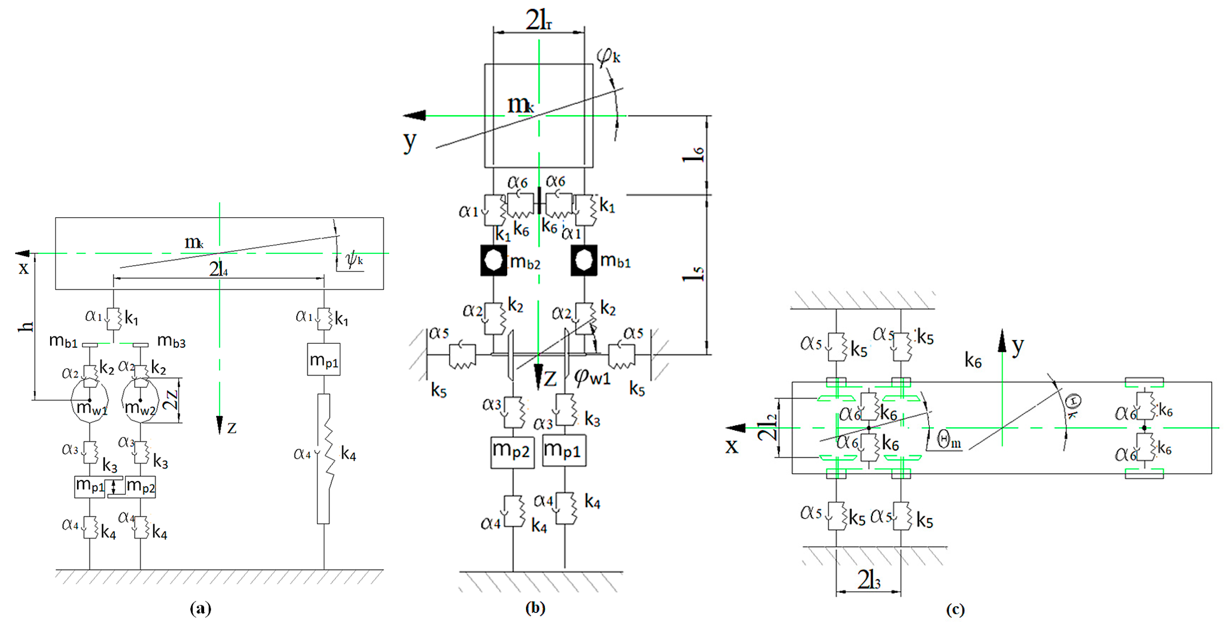 | Equivalent damping coefficient (side frame–axle) | α2 | 1.5 × 105 N·s·m−1 |