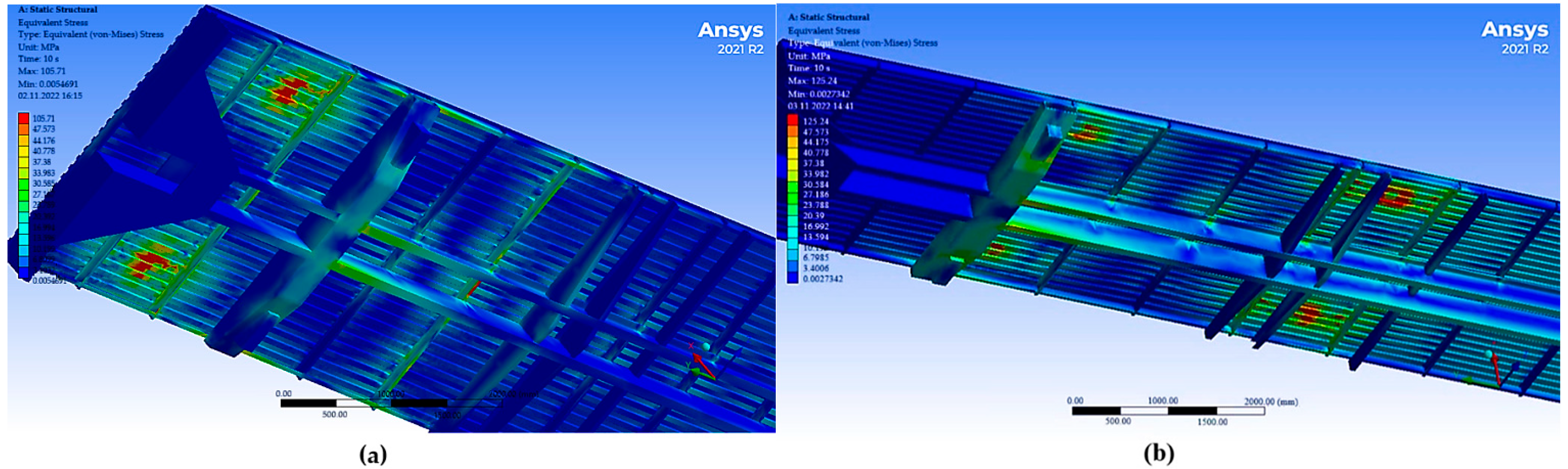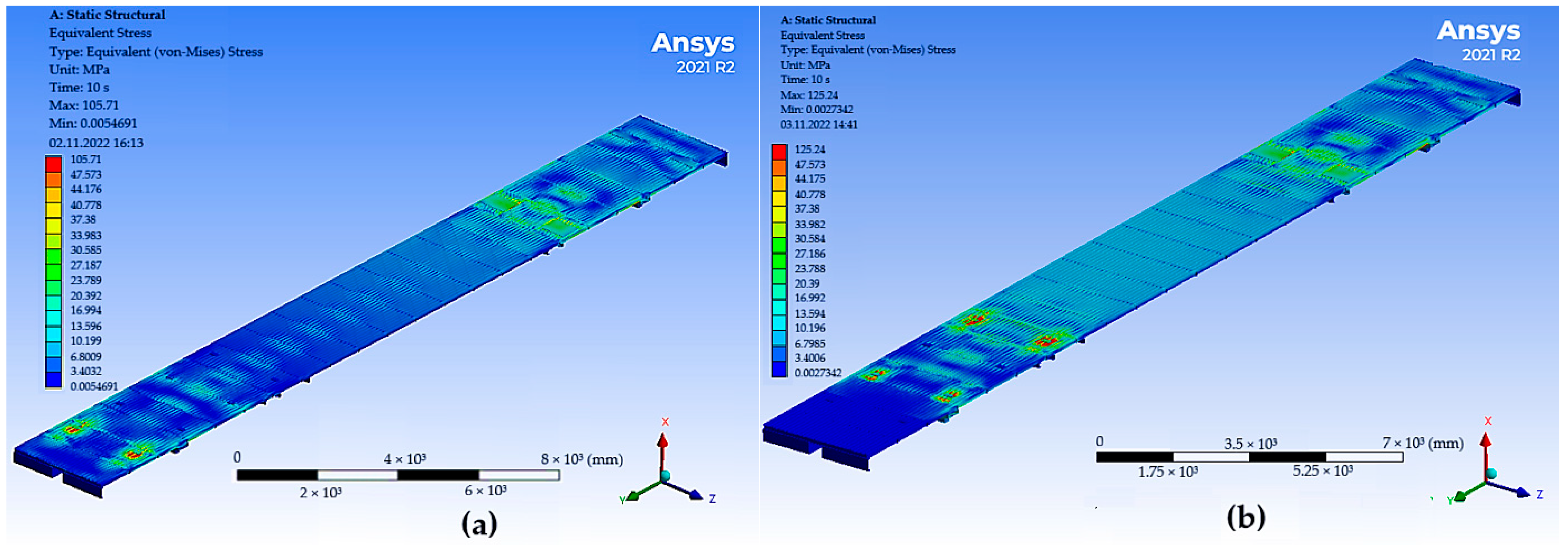 - Denisenko, M.A.; Isaeva, A.S.; Sinyukin, A.S.; Kovalev, A.V. Models and a Deformations Simulation Approach Using ANSYS CAD for Railway Wagons Weighing System. Sci. Tech. J. Inf. Technol. Mech. Opt. 2024, 24, 284–292. [Google Scholar] [CrossRef]