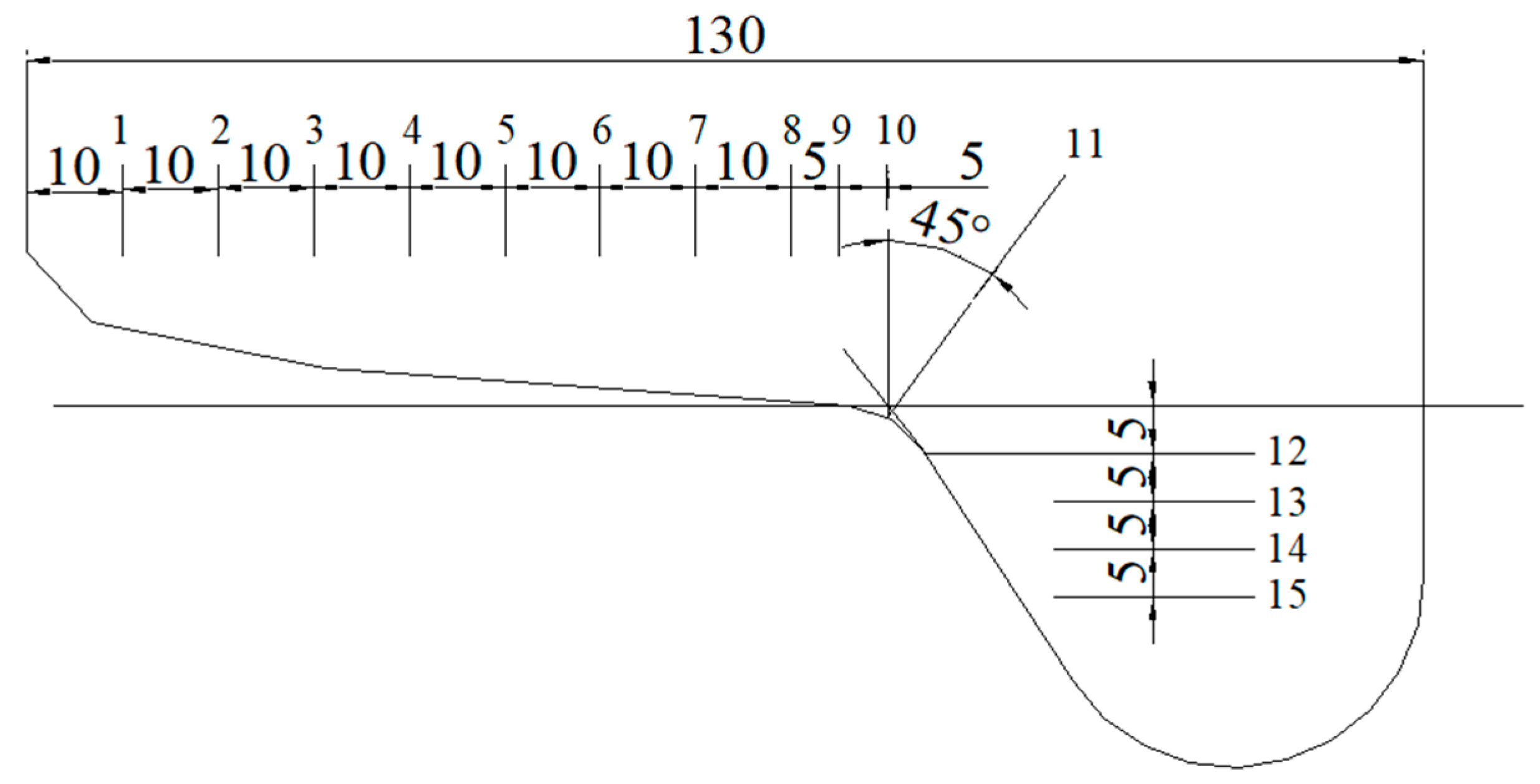 - the drop of the point below the rail threads at sections of 20, 30, and 40 mm is set at 5, 3, and 1 mm, respectively;