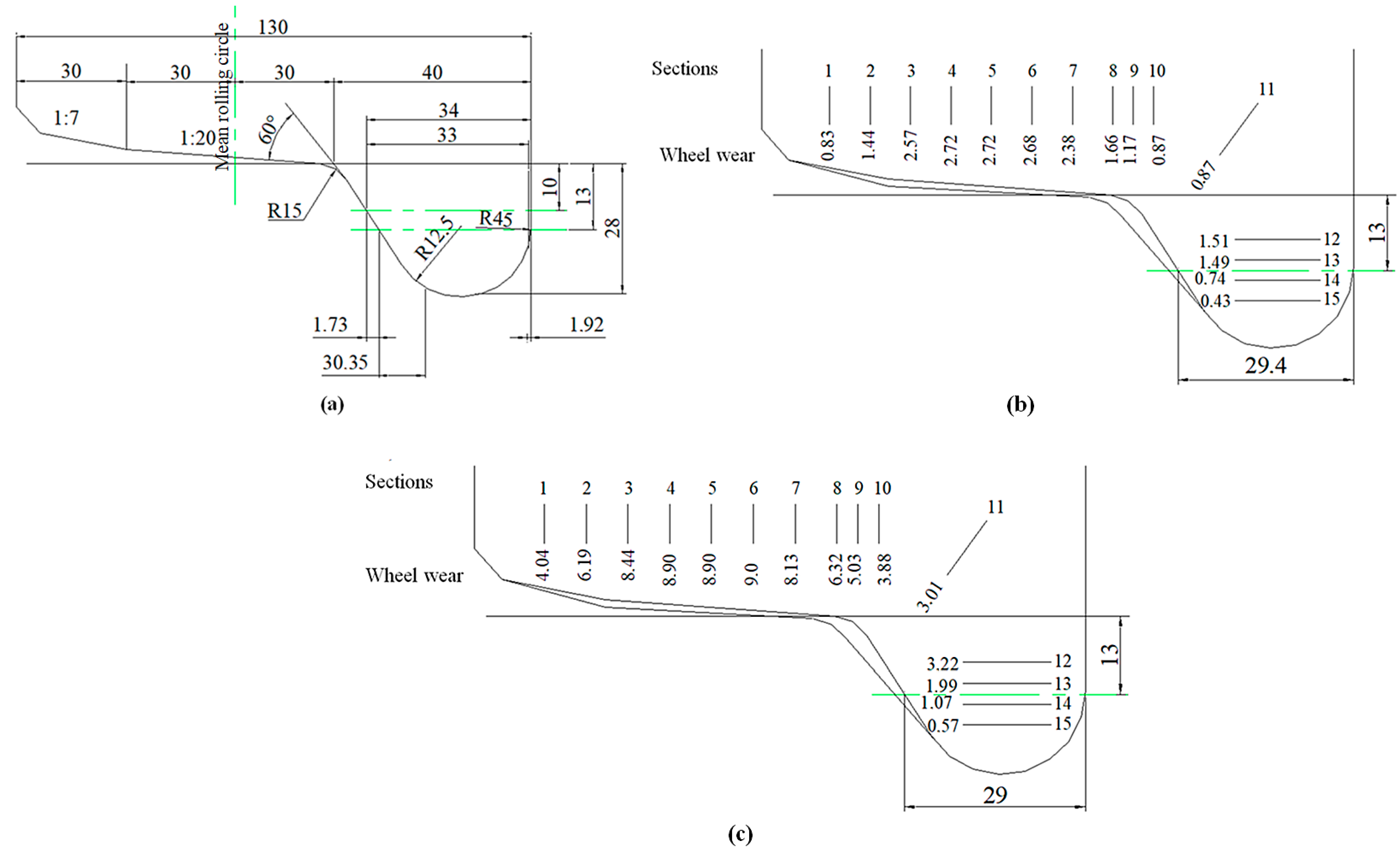 - Ciotlaus, M.; Kollo, G.; Marusceac, V.; Orban, Z. Rail–Wheel Interaction and Its Influence on Rail and Wheels Wear. Procedia Manuf. 2019, 32, 895–900. [Google Scholar] [CrossRef]