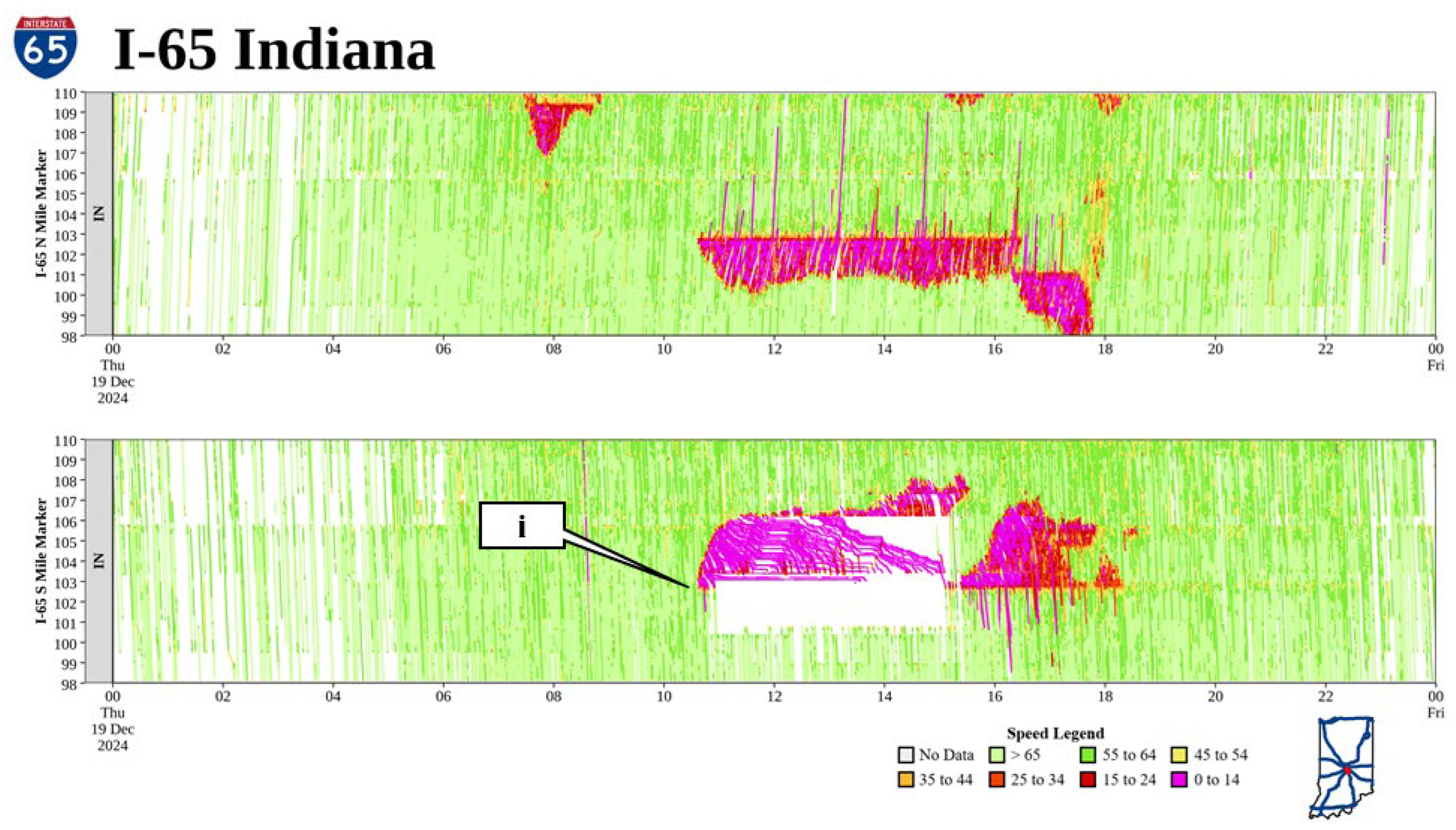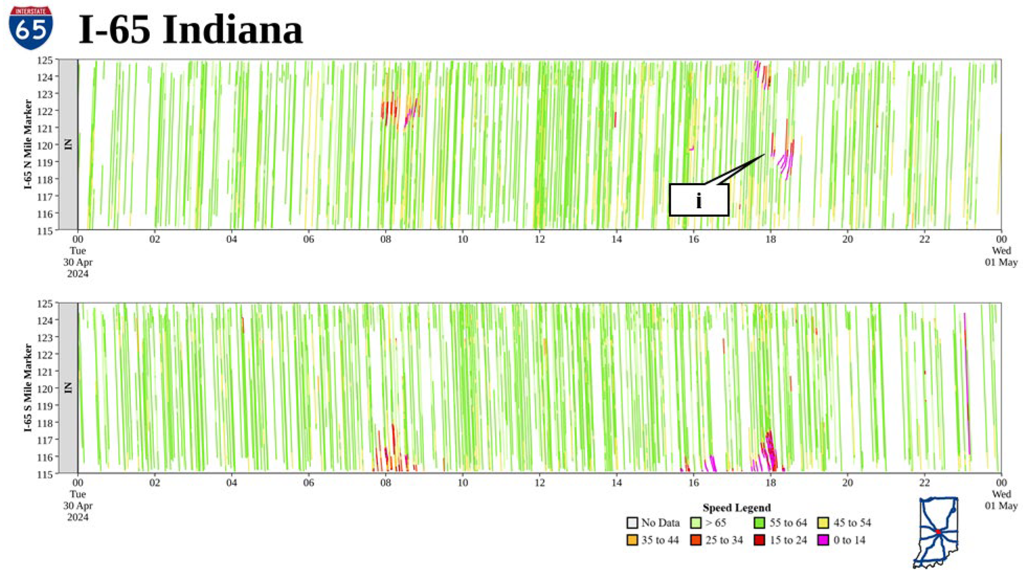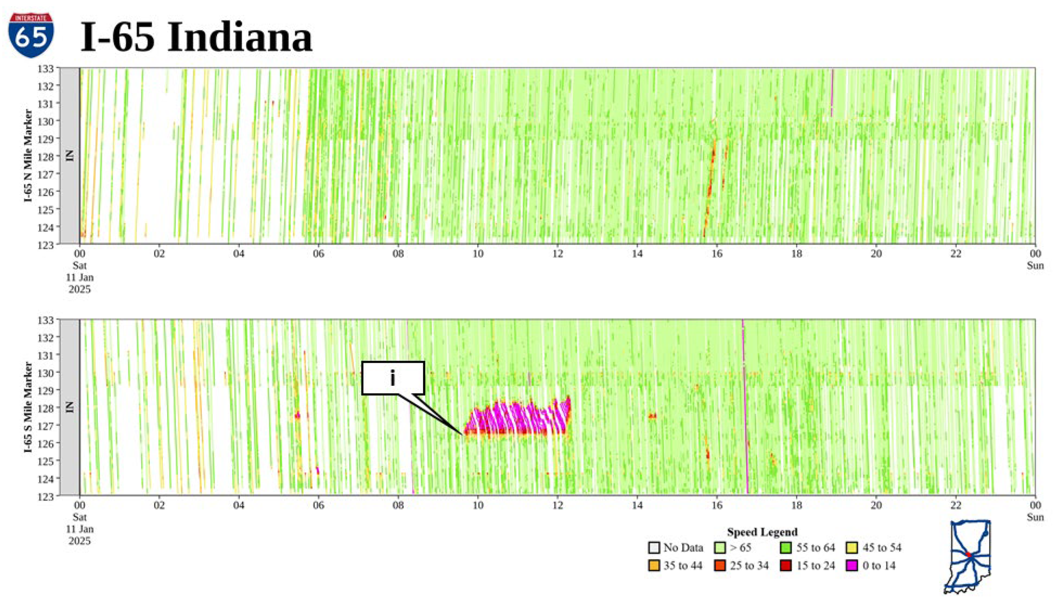 - Sakhare, R.S.; Desai, J.; Mathew, J.K.; McGregor, J.; Kachler, M.; Bullock, D.M. Measuring and Visualizing Freeway Traffic Conditions: Using Connected Vehicle Data; Joint Transportation Research Program: West Lafayette, IN, USA, 2024. [Google Scholar]
