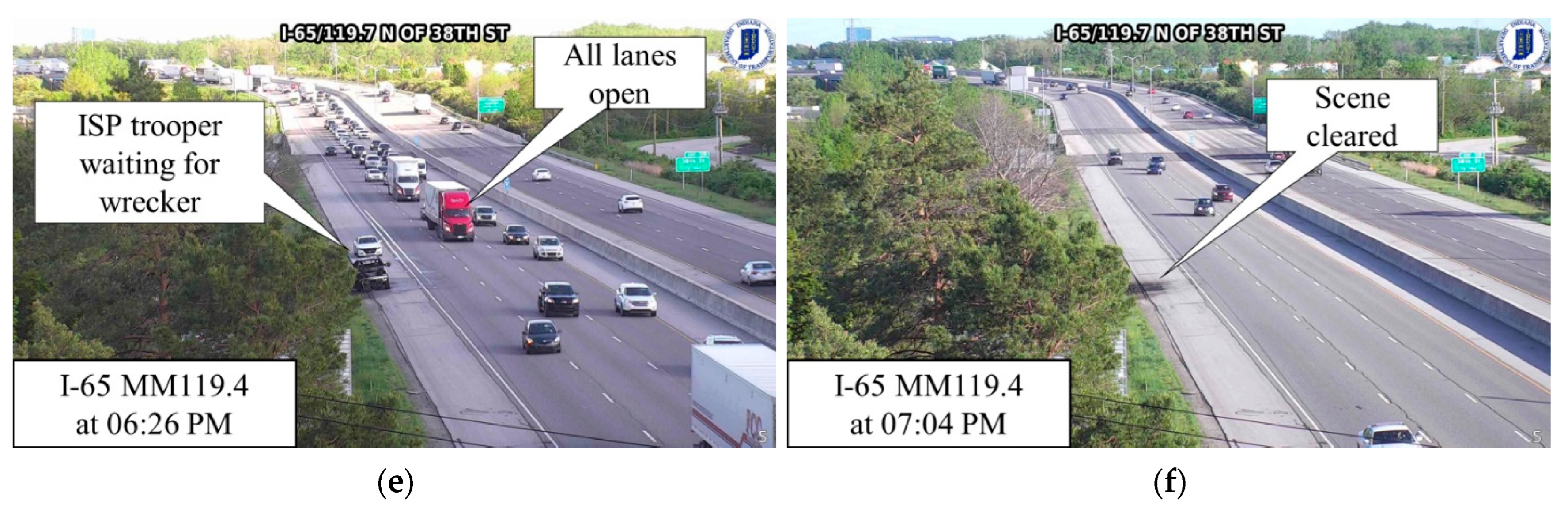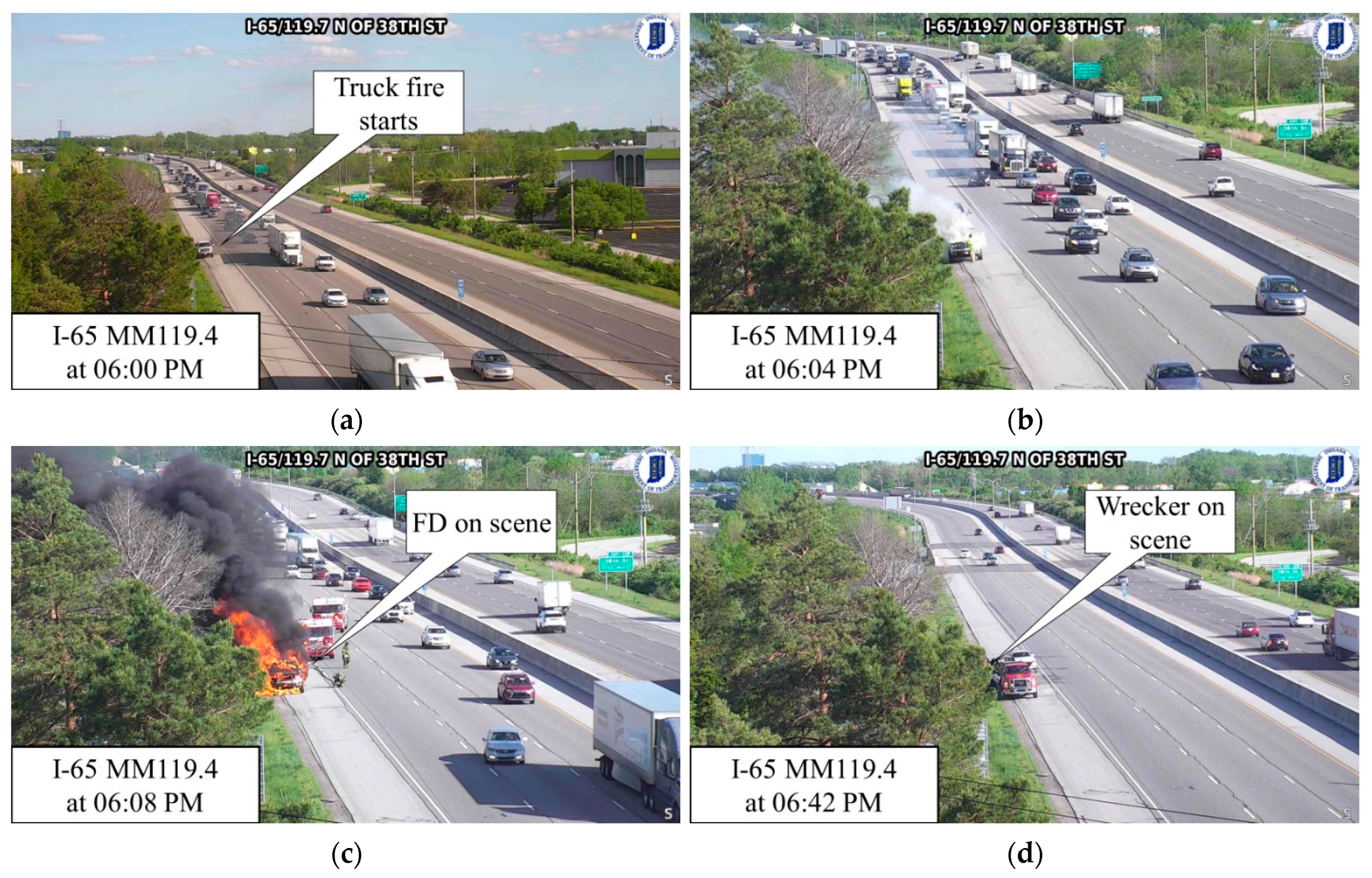 - A passenger vehicle fire with two lanes blocked for 18 min and a total incident duration of 1 h and 4 min. The estimated RRMT was 34 min.