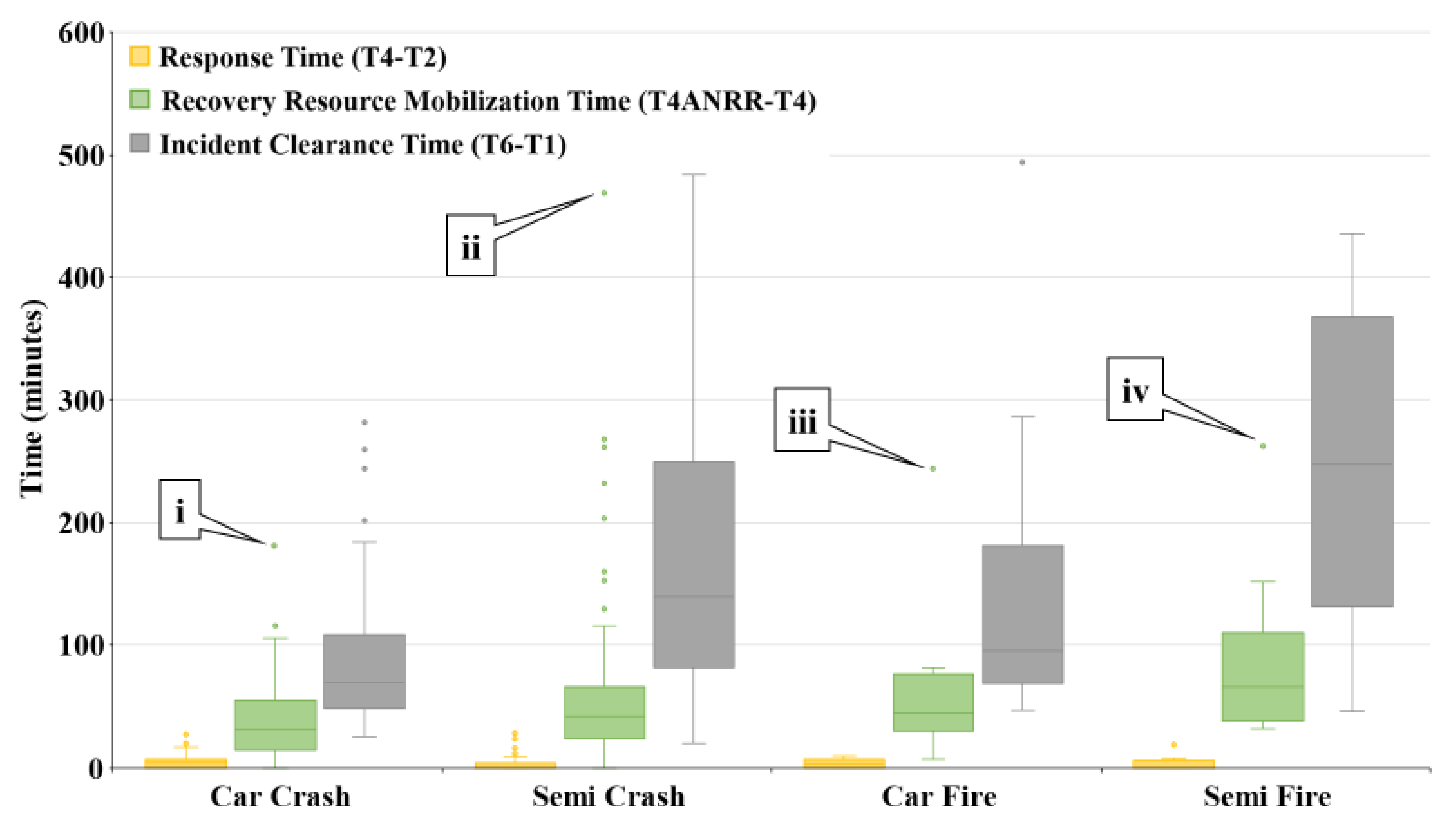 | Incident Clearance Time (ICT) | T6–T1 | 228 | 184 | 64 | 357 |
