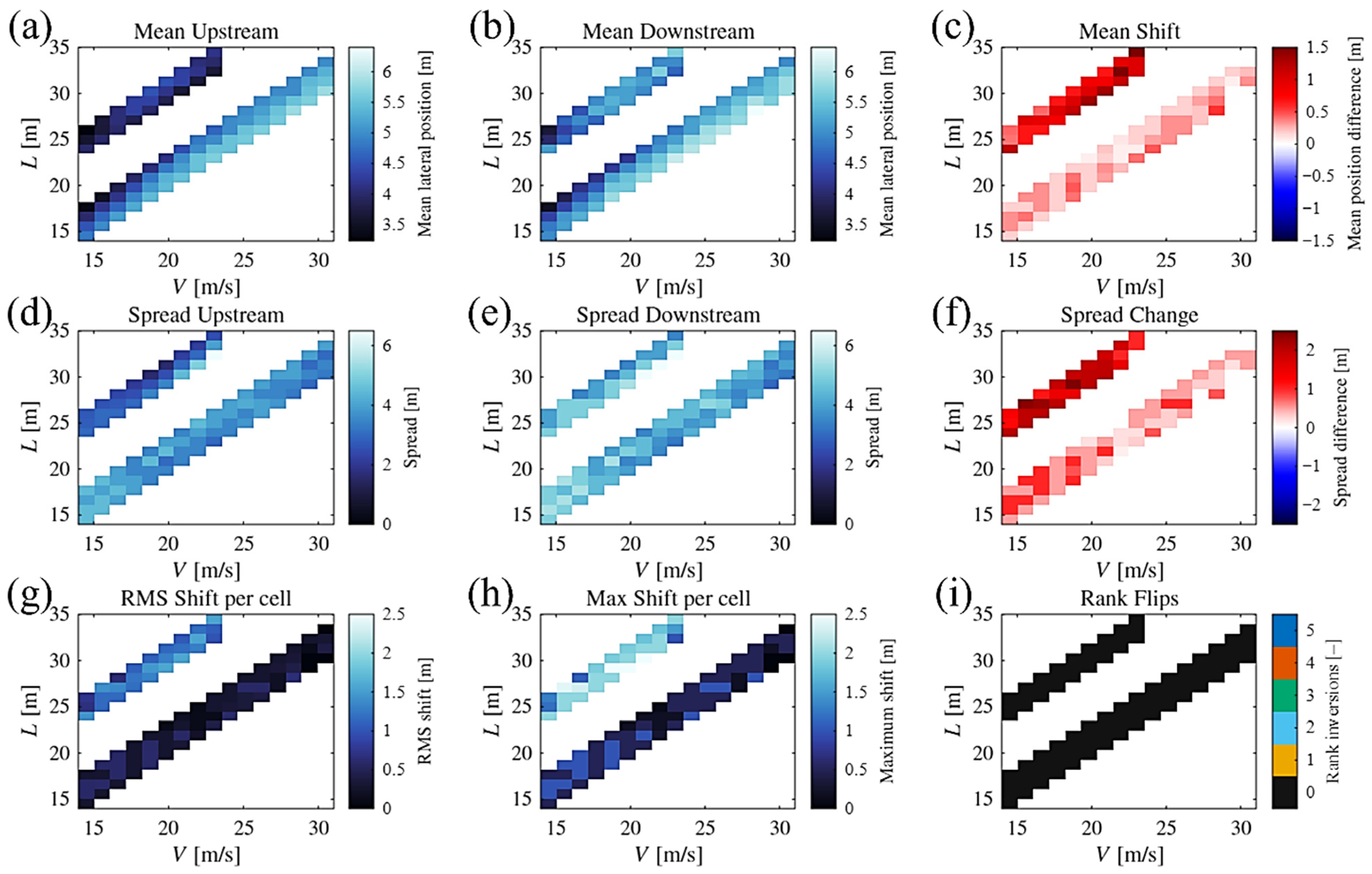 Figure 16 summarizes the up- and downstream lateral positions for all cases presented in