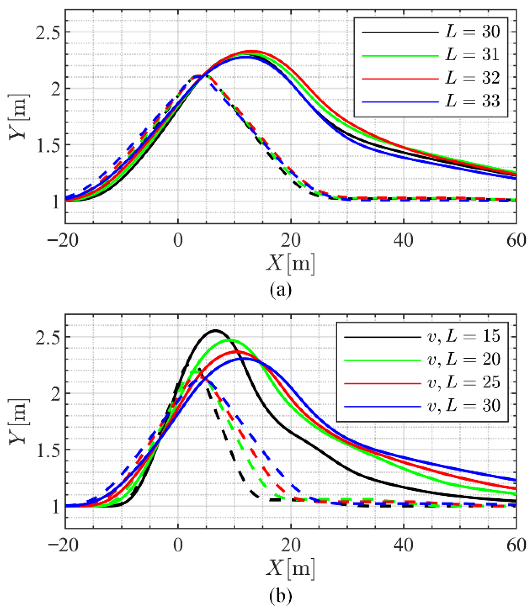 Figure 20), the types of maneuvers expected in light of the present model are not outside of the overall performable steering cases expected for the vehicles on the road without the presence of an obstacle. Furthermore, it is needless to say that the present work has targeted the problem at a proof-of-concept level, and further complex configurations (e.g., moving obstacles) are left for follow-up manuscripts. More on this point is discussed in the Conclusions as an outlook for future works.