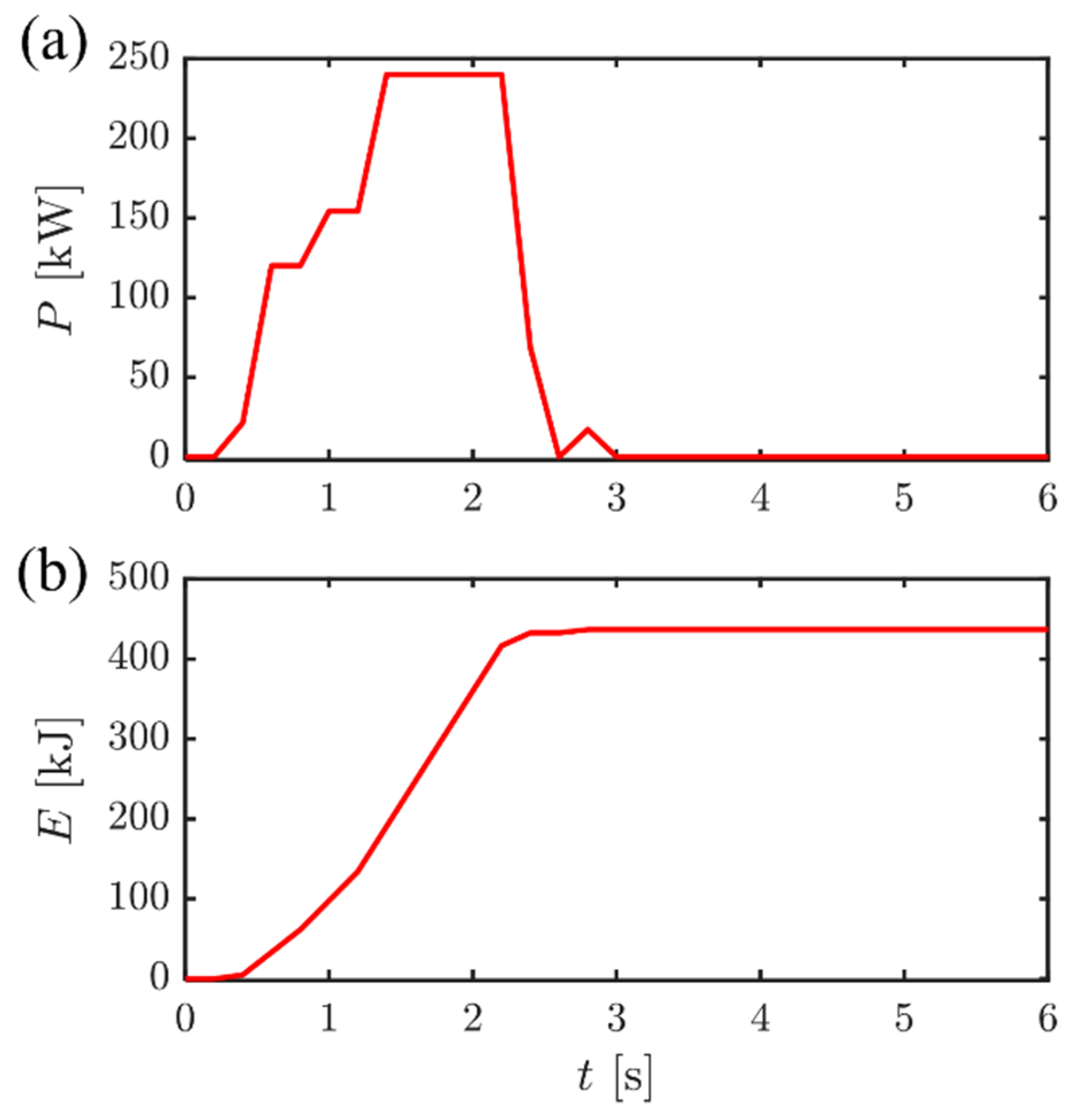 Figure 22 presents the steering-actuator input power and cumulative energy consumption over time, assuming an average steering-motor torque of 0.8 Nm, steering ratio of 25, and a mechanical efficiency of 90%.