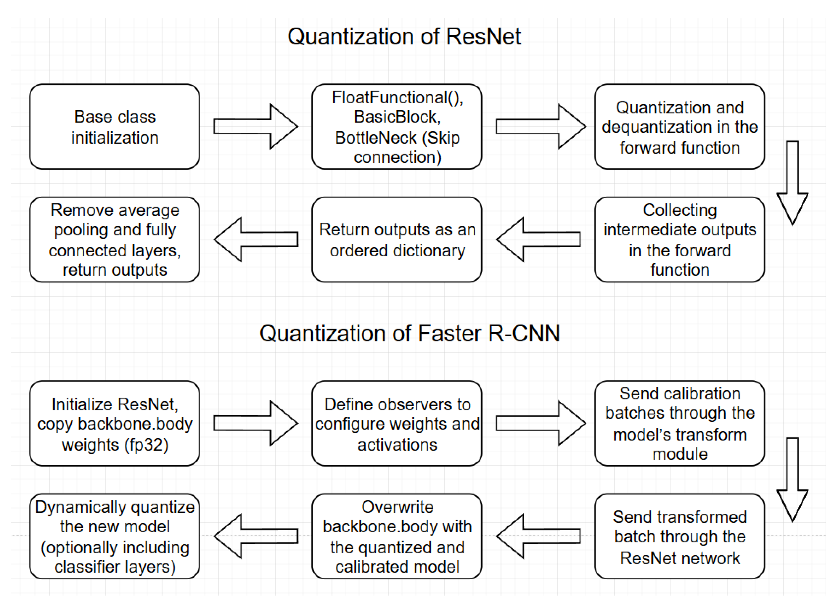 12] and Faster R-CNN architectures and their generalized quantization steps.