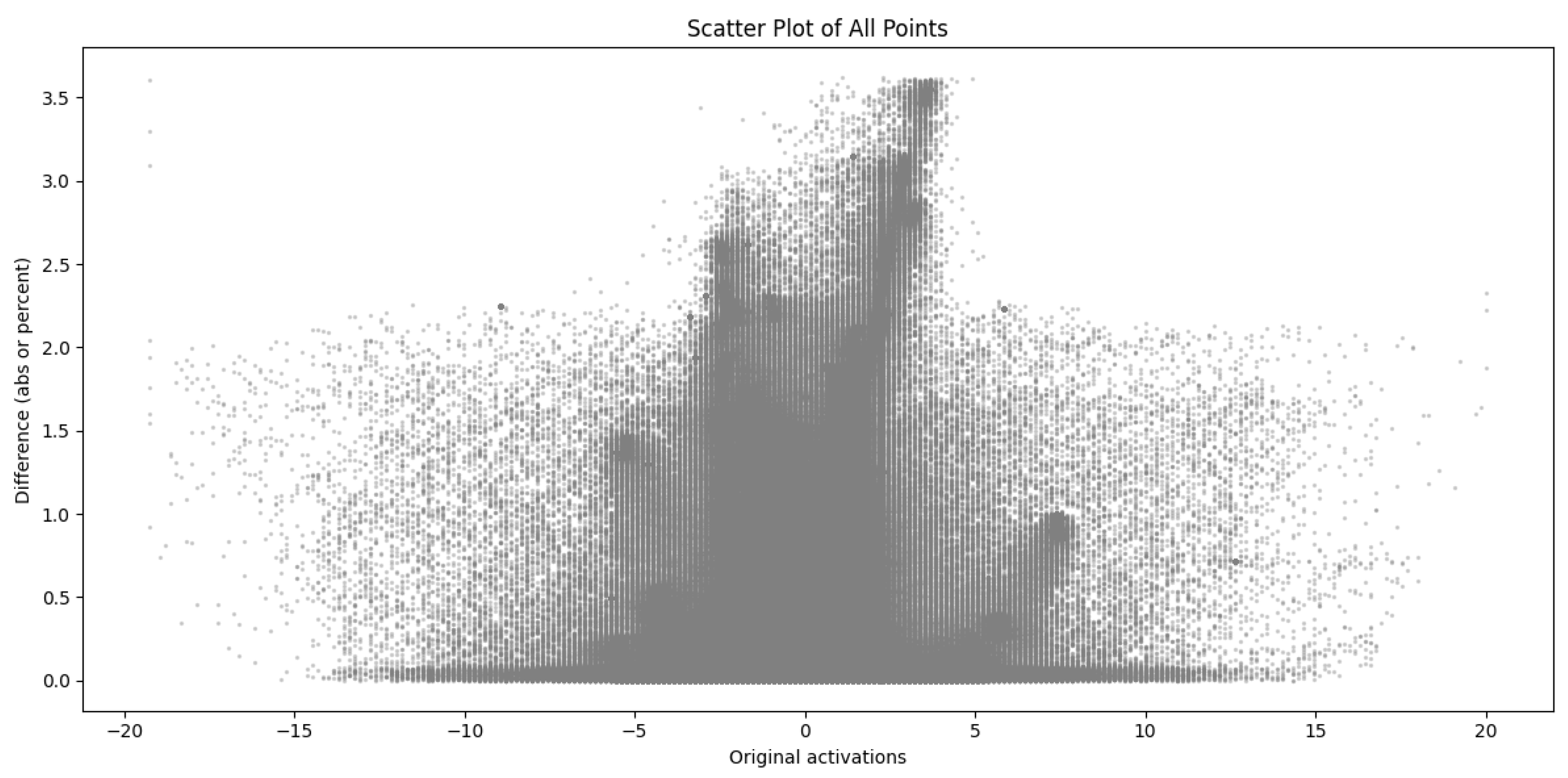 The Torch supports hooks, so traceability is possible for both versions. In addition, hexbin plots can be used to cluster the differences in activations based on the activations of the original model, here it is not necessary to take the maxima of the channels, and any metric can be used, as will be demonstrated in