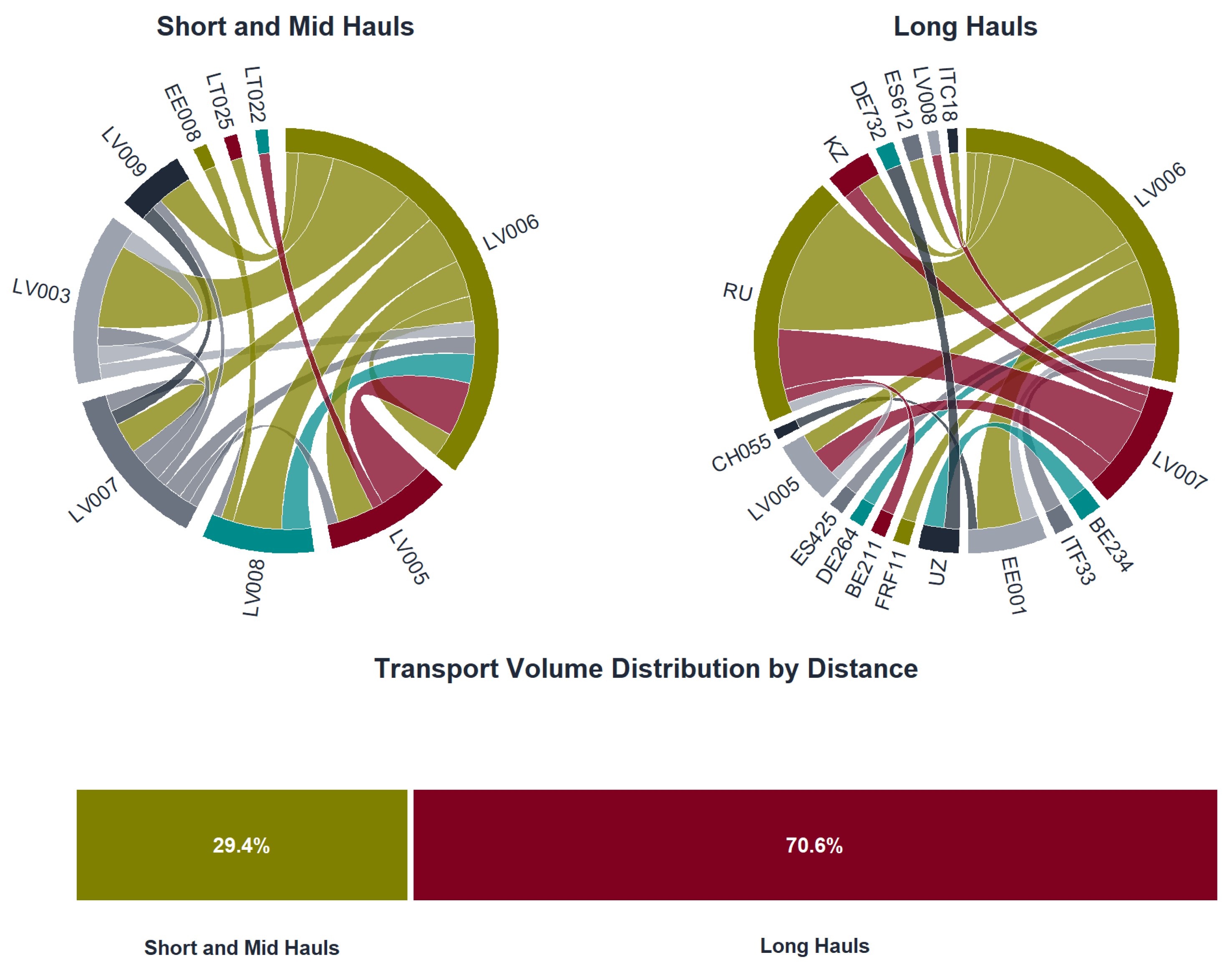 Alternative technology adoption is supported by comprehensive infrastructure mandates and strategic frameworks. Electric vehicle deployment benefits from Regulation (EU) 2023/1804, requiring charging points every 60 km on major roads by 2025. Hydrogen vehicles receive support through the EU Hydrogen Strategy (COM/2020/301) aiming for the generation of 10 million tons of renewable hydrogen production by 2030, complemented by Directive (EU) 2024/1788 mandating hydrogen refueling stations every 200 km on TEN-T roads by 2030. Rail freight receives strategic emphasis through goals to double rail freight traffic by 2030 and triple it by 2050, supported by Latvia’s Transport Development Guidelines aiming for 20% of cold chain freight to shift to rail by 2030.