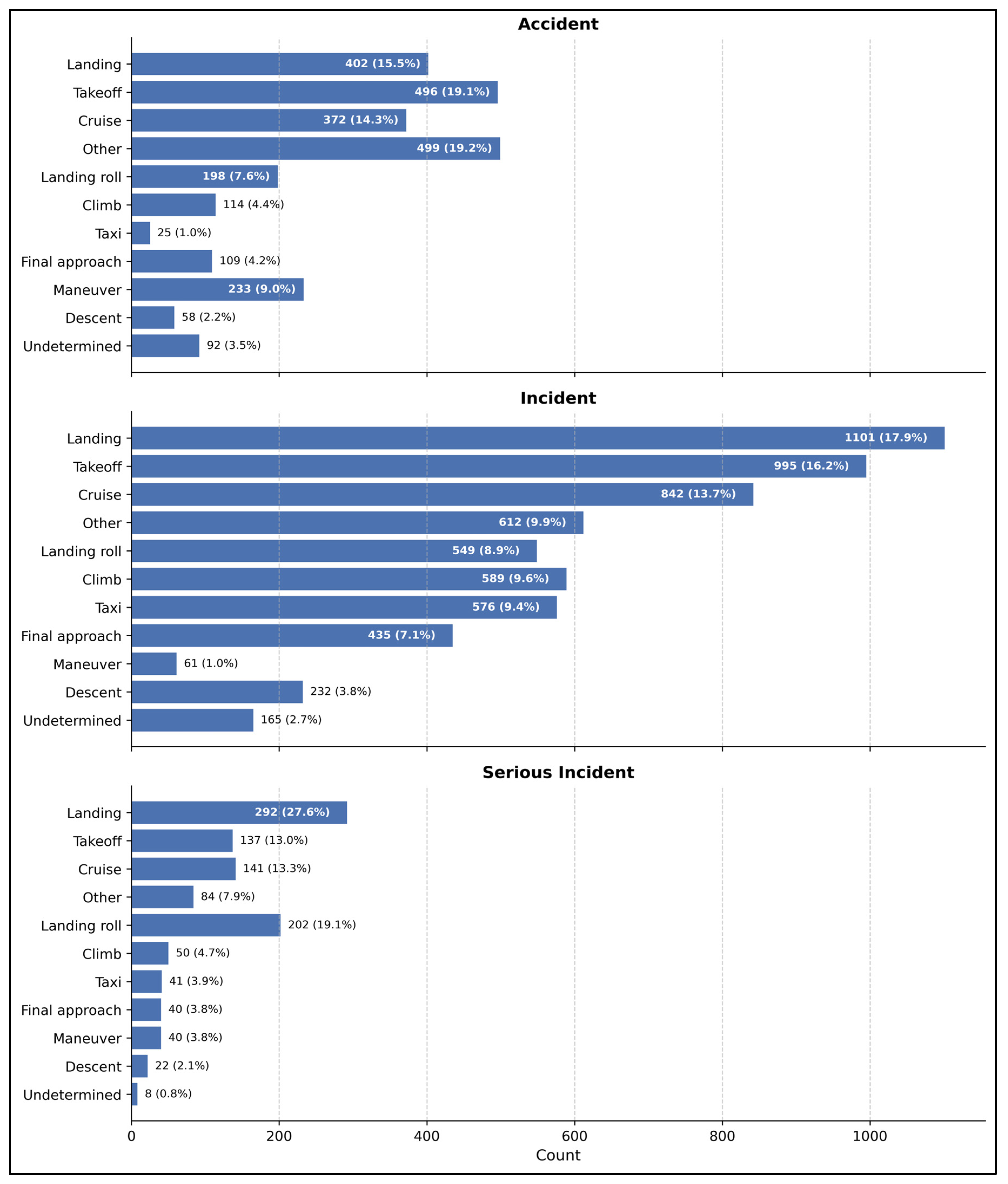 | flight_phase | phase of flight at the time of the occurrence (takeoff, landing, cruise, etc.) | categorical |