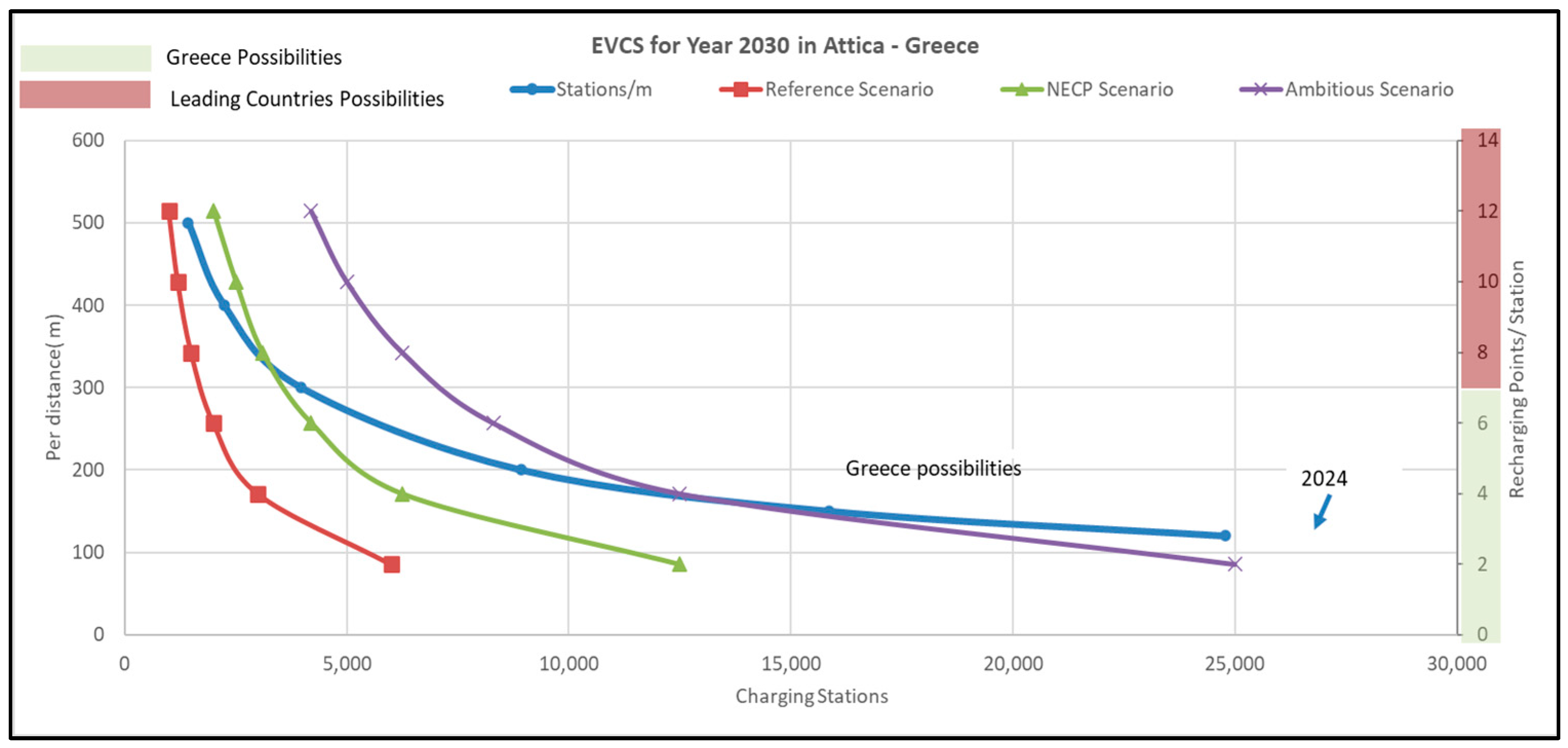 Table 11 that follows, a breakdown of the required number of stations for each scenario is presented, with a focus on the Attica region, which accounts for approximately 50% of the national vehicle fleet, and hence serves as a suitable proxy for half the country’s infrastructure demand [