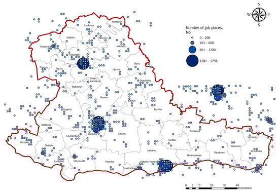 The map of the number of job places in Tauragė region (compiled by the authors).