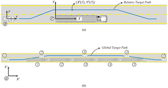 Coordinate frames are used to describe the target path. (a) Relative target path. (b) Global target path.