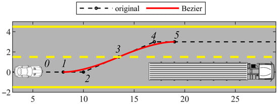 Chen et al. [22] used a piecewise quadratic Bezier curve to smooth the desired path of motion for lane-change maneuvers, due to its tangent and curvature continuity and simplicity of formulation, which is favorable for real-time implementation. The results show that the target path provides passenger comfort while satisfying the vehicle dynamics.