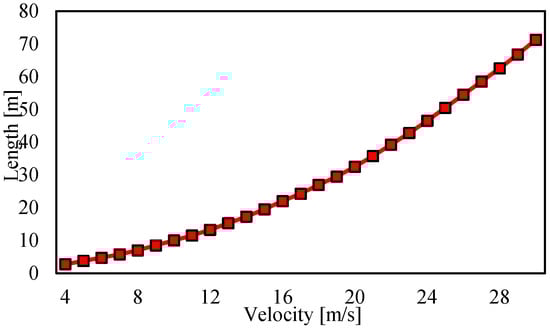 It is worth mentioning that the traffic Mach number is defined based on the relative velocity of the two moving vehicles. This, although logical from the standpoint of fluid dynamics principles, might lead to conditions where the initial traffic Mach number is above unity, hence the supersonic premise is met, but the configuration between the triple parameters of β, θ, and the Mach number leads to a detached shock configuration. This happens when the nominal maximum half-wedge angle corresponding to the present Mach number exceeds its limit for an oblique shockwave, which is the simplified basis of the current methodology. Since in the mentioned cases the primary assumptions of supersonic, compressible flow are occurring, and the only deviation is the slight bending of the shockwave geometry from its straight oblique form, a correction procedure has been applied to address the geometric definition of the half-wedge angle leading to the detached configuration. To do that, the ratio between the maximum and that of the calculated one is also used to proportionate the modified length (L). However, the inlet traffic Mach number is to be kept at the original gas dynamics-driven one, when entering the corresponding modified geometry.