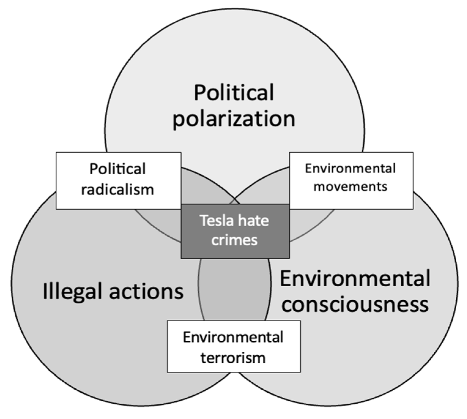 We point out five possible directions where the legal assessment of these actions can conclude. Firstly, the most basic assessment is property crime, not taking into consideration any political connotations or motivations of hate in the action. A subcategory of property crime reflects the motive behind the incidents. We examine whether these actions can be considered hate crimes. Next, we examine whether the political statements were right and whether domestic terrorism can be established. We also look at harassment as a possible legal assessment. Finally, we examine the other end of the spectrum, arguing whether defacing Tesla vehicles is a form of political protest or civil unrest protected by freedom of expression, comparable to the taking down of monuments by the Floyd/Black Lives Matter movement in 2020. In our assessment, we will mainly rely on the case and statutory law of the United States, since most of the Tesla vandalism cases occurred there.