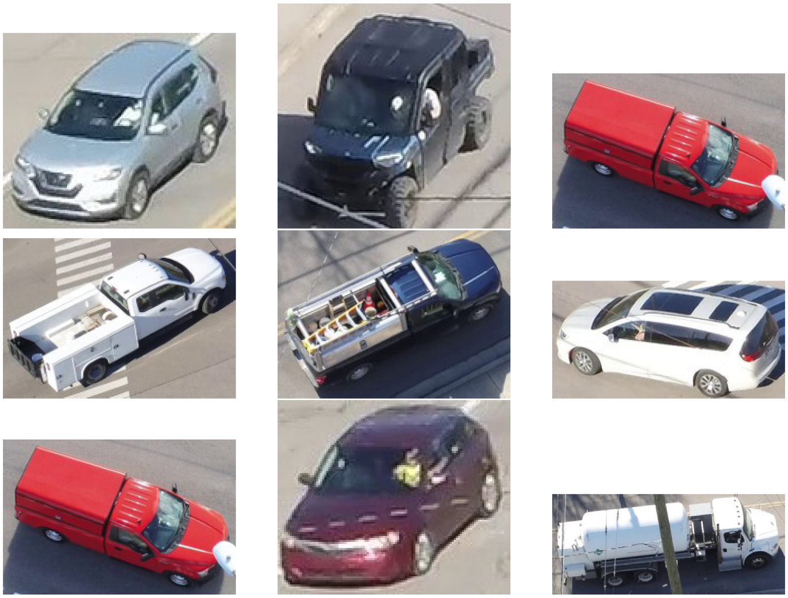 Figure 3 shows sample UAV multi-view vehicle images captured at ORNL, illustrating the diversity of perspectives in our dataset.